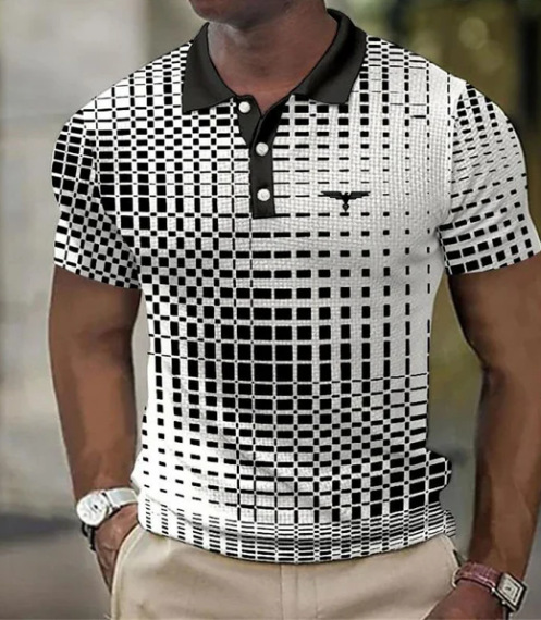 국경을 넘는 유럽 및 미국 독립 스테이션 신상 남성용 반팔 폴로 셔츠 3D 디지털 프린트 캐주얼 트렌디 라펠 셔츠스토어 가기