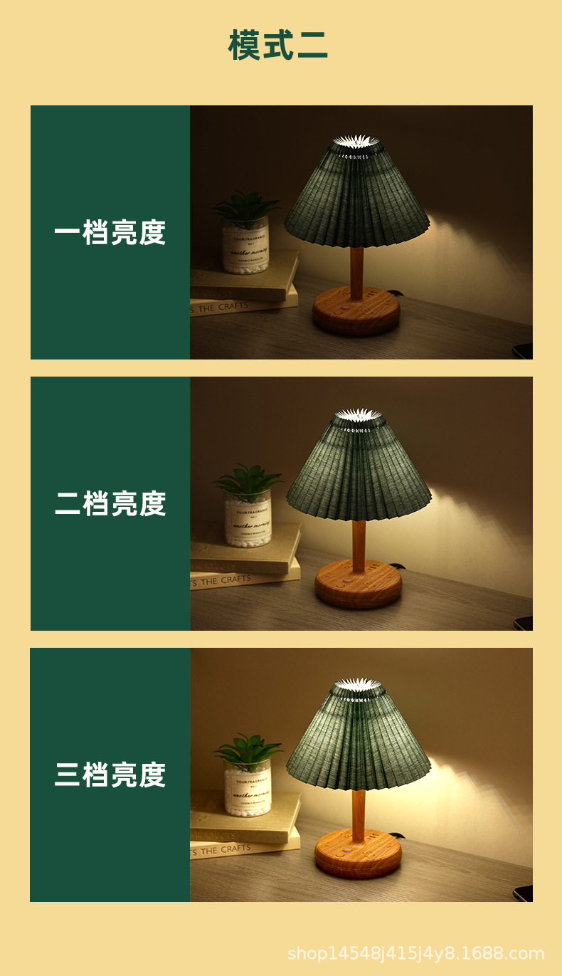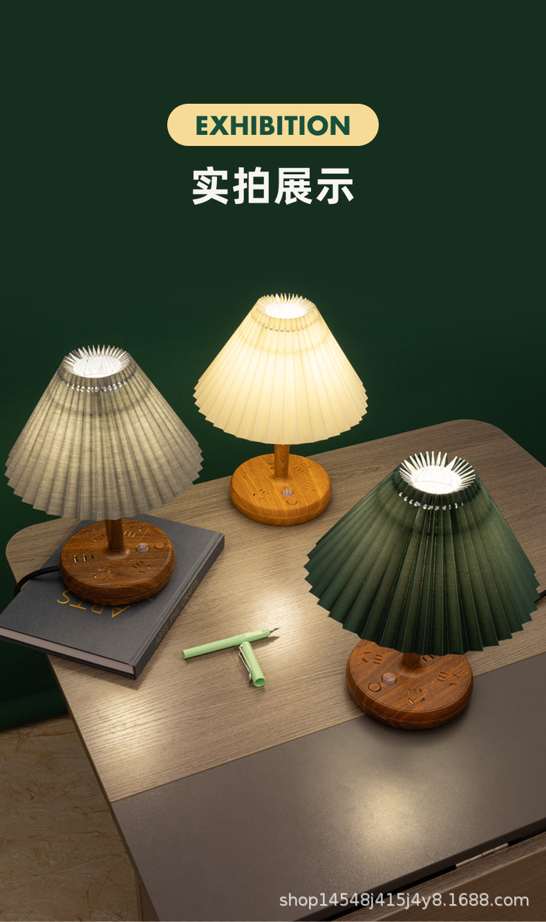 • 3 색 온도 전구가있는 우드 베이스 [다크 그린]