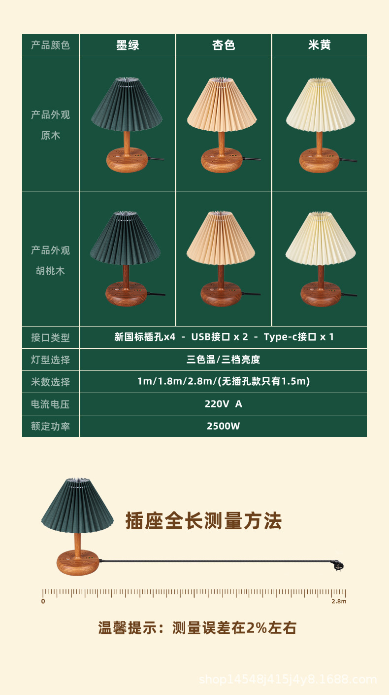 • 3 색 온도 전구가있는 호두베이스 [다크 그린]