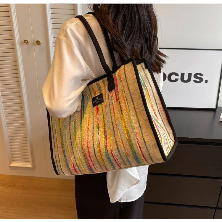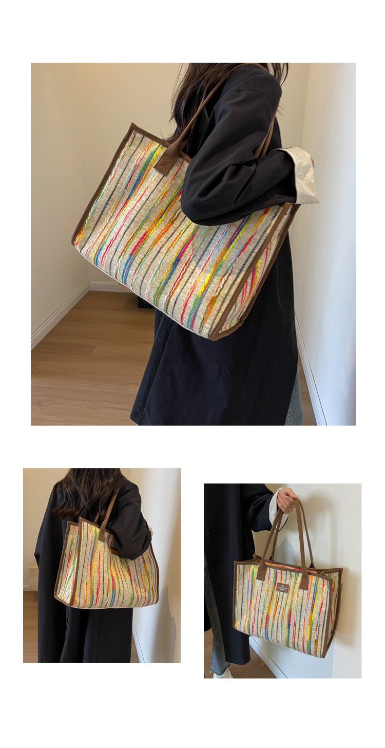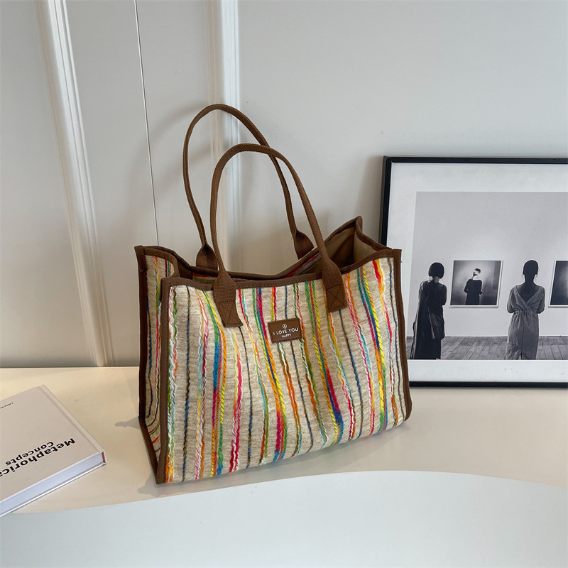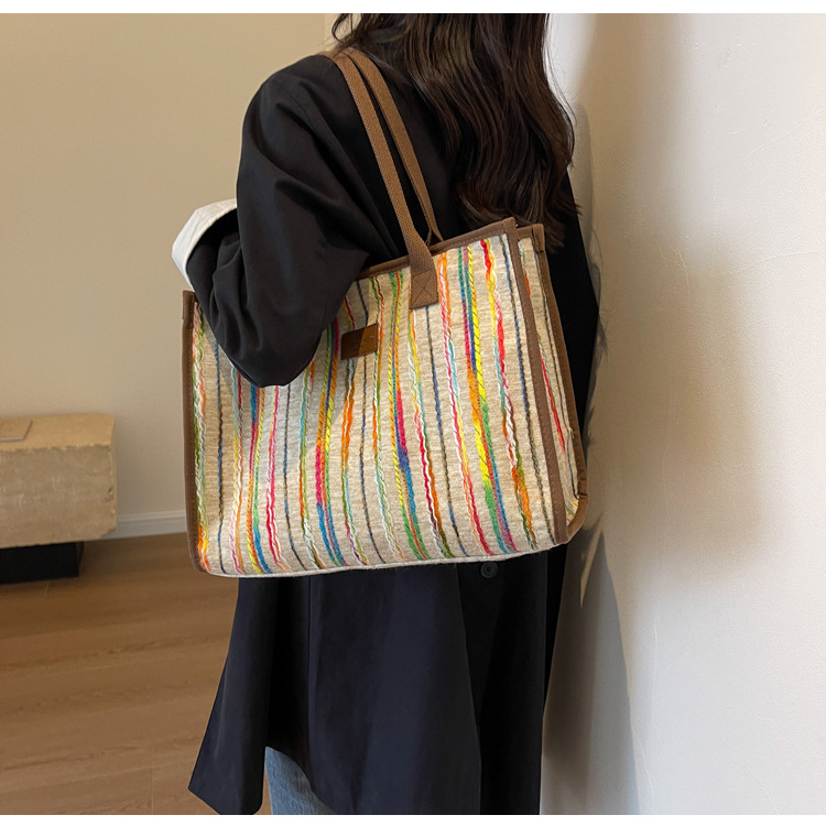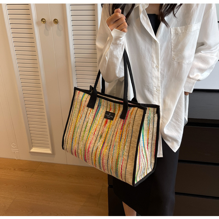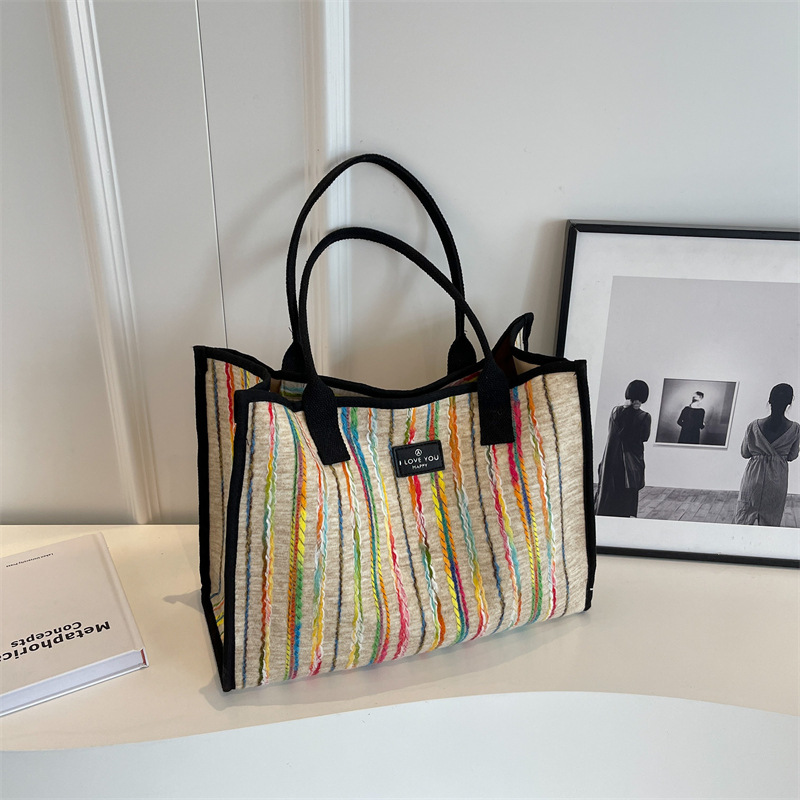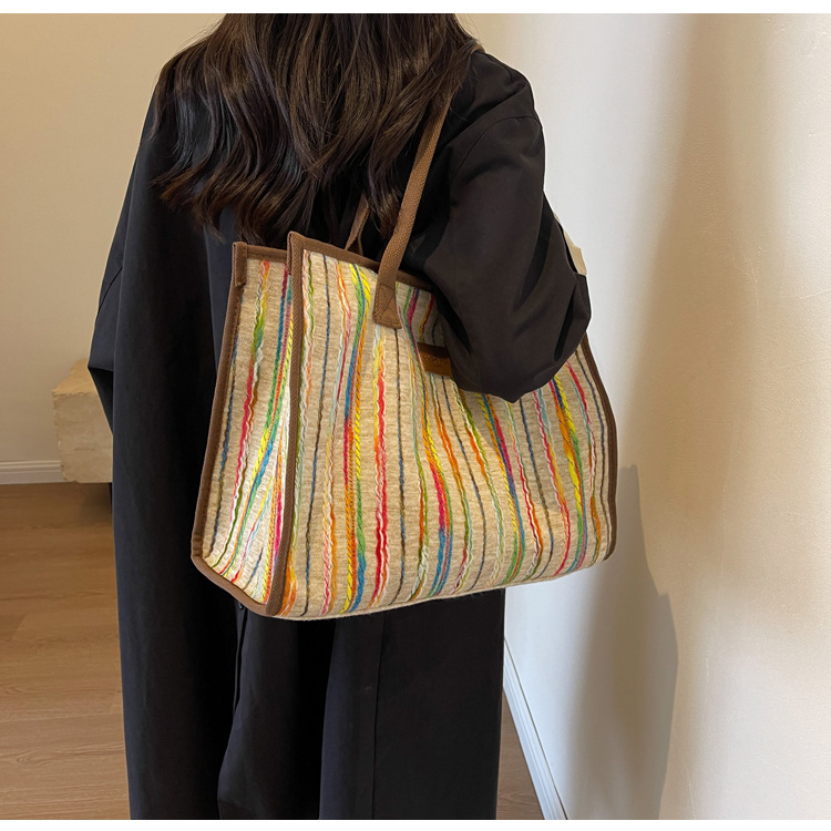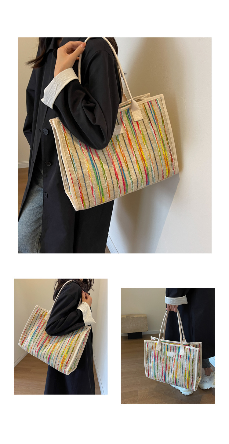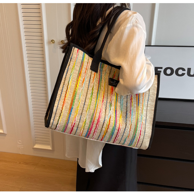 크로스 보더 패션 캐주얼 휴대용 대용량 가방 여성용 뉴 컬러 스트라이프 토트백 여름 모든 매치 겨드랑이 가방