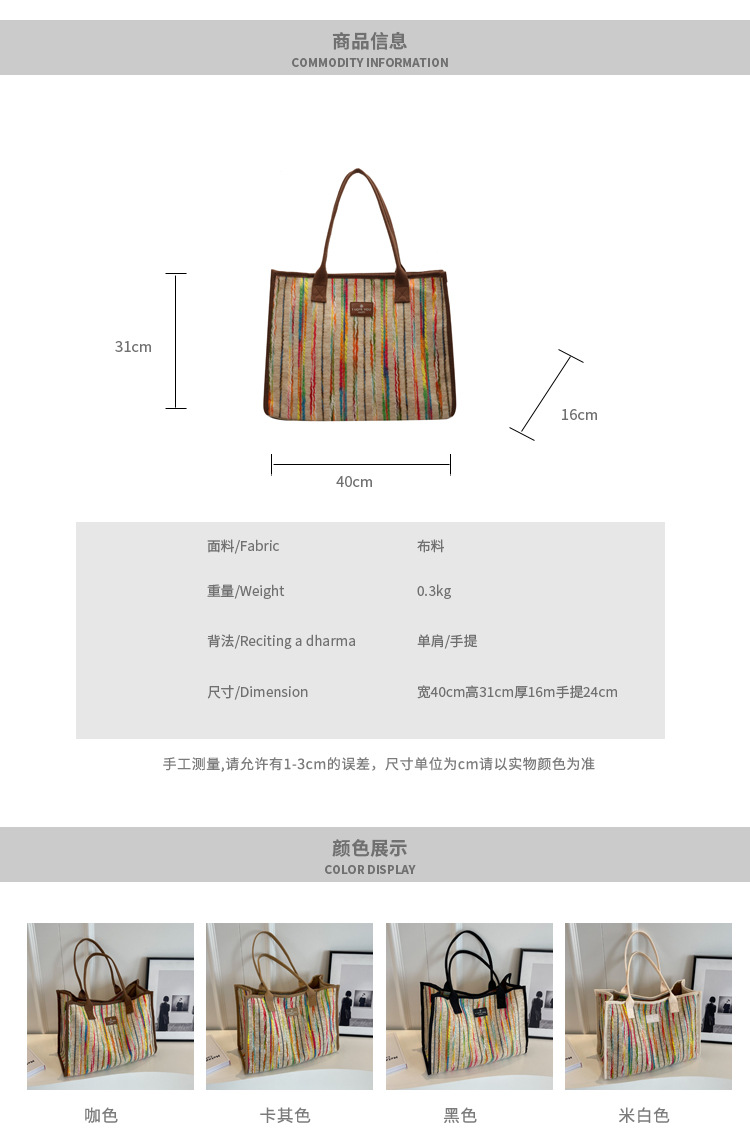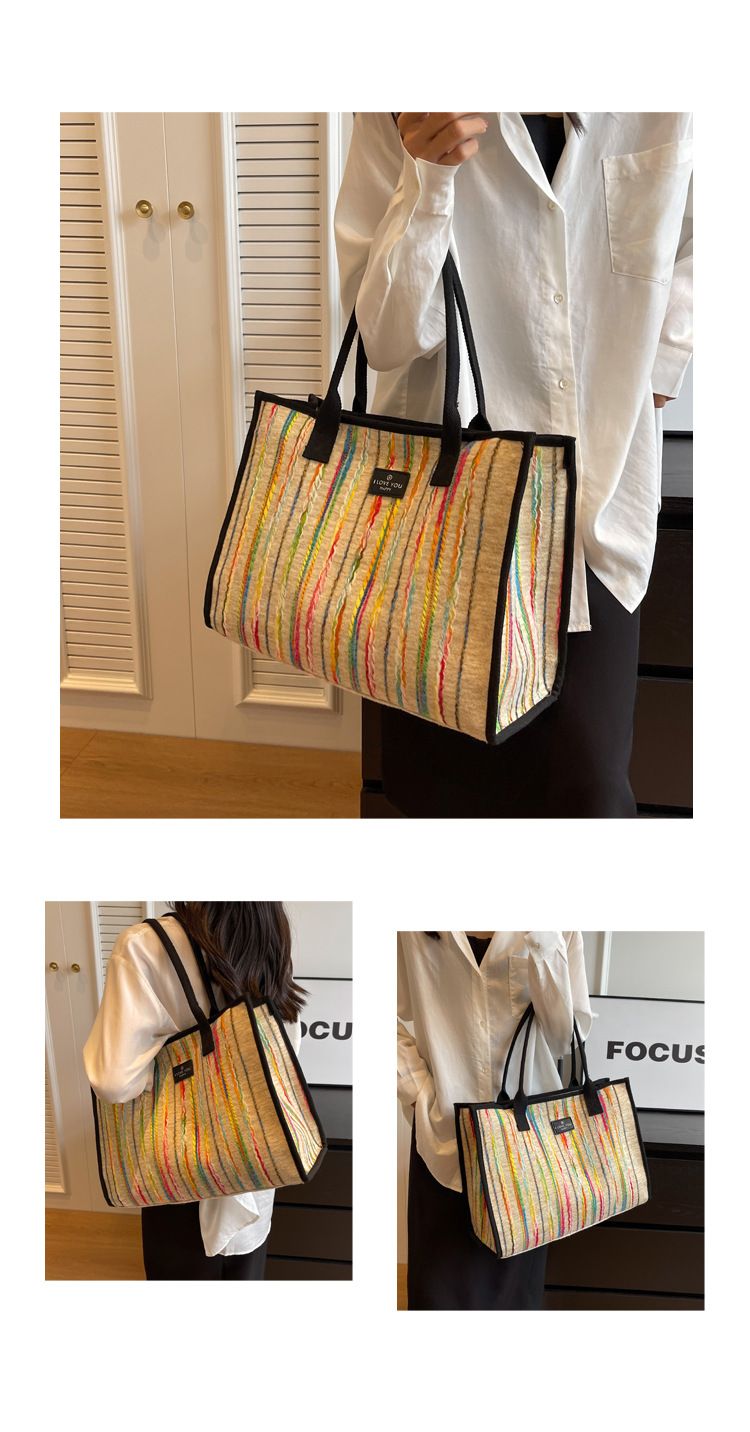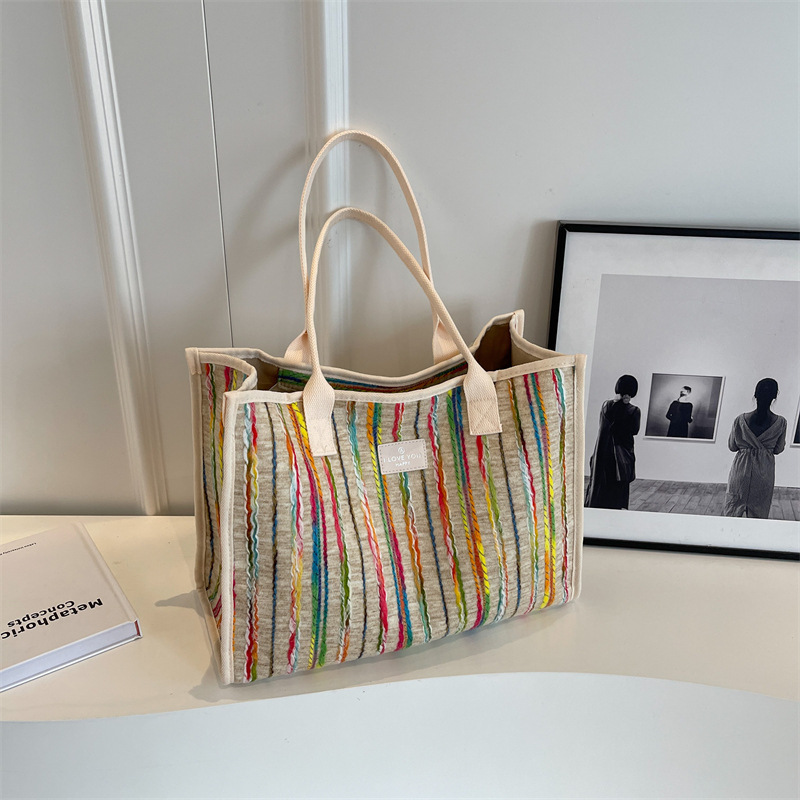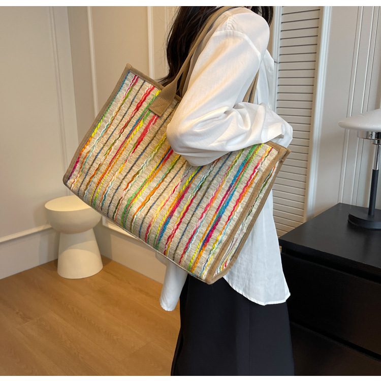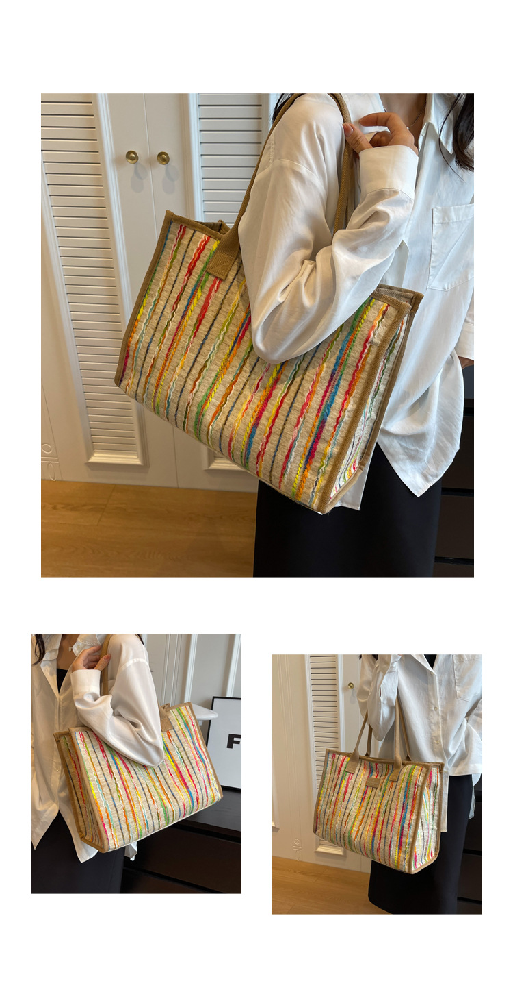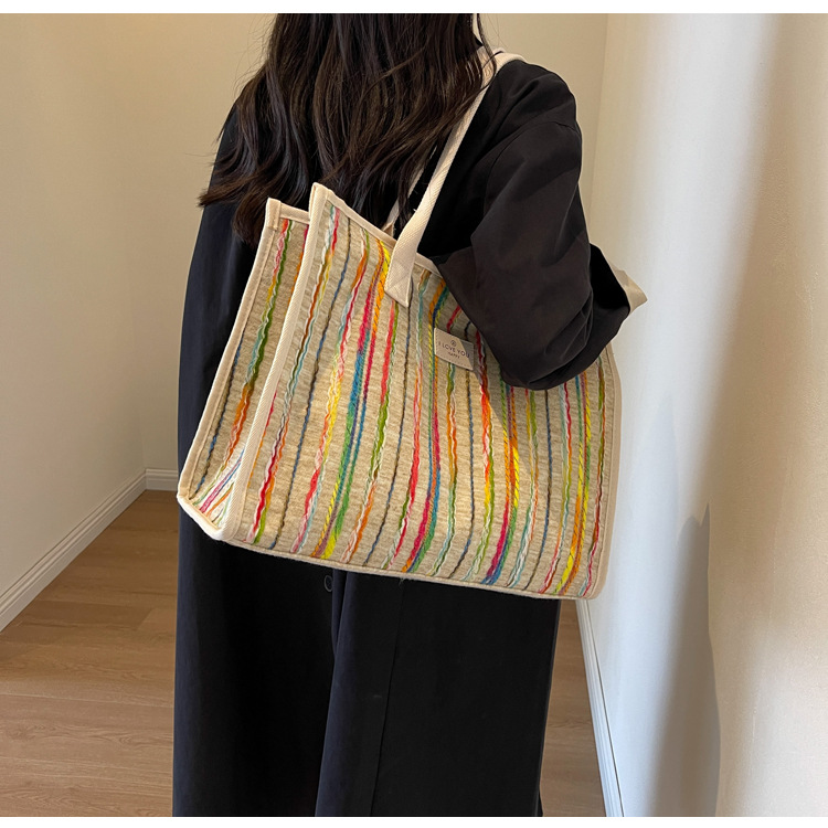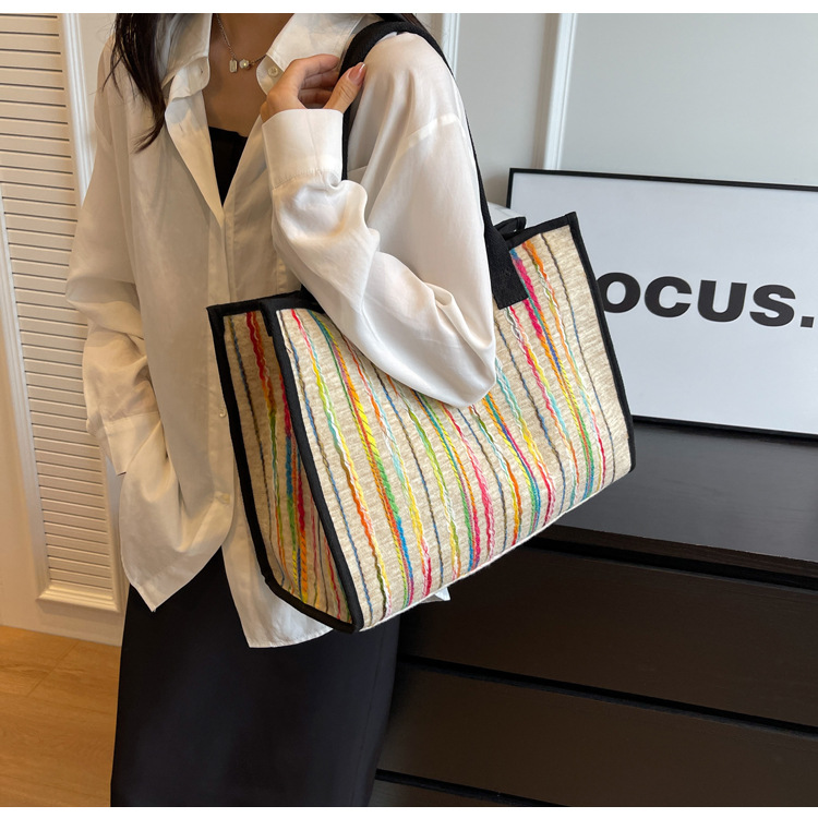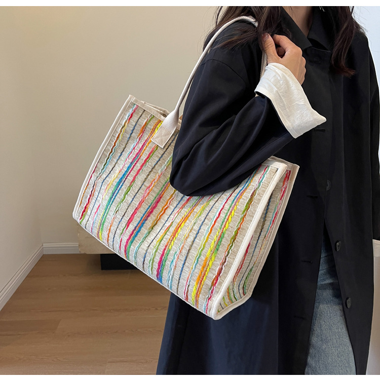 크로스 보더 패션 캐주얼 휴대용 대용량 가방 여성용 뉴 컬러 스트라이프 토트백 여름 모든 매치 겨드랑이 가방스토어 가기