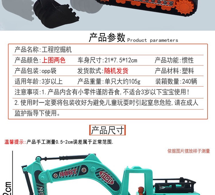 어린이 굴삭기 장난감 대형 관성 엔지니어링 차량 굴삭기 후크 기계 시뮬레이션 모델 실속 공급스토어 가기