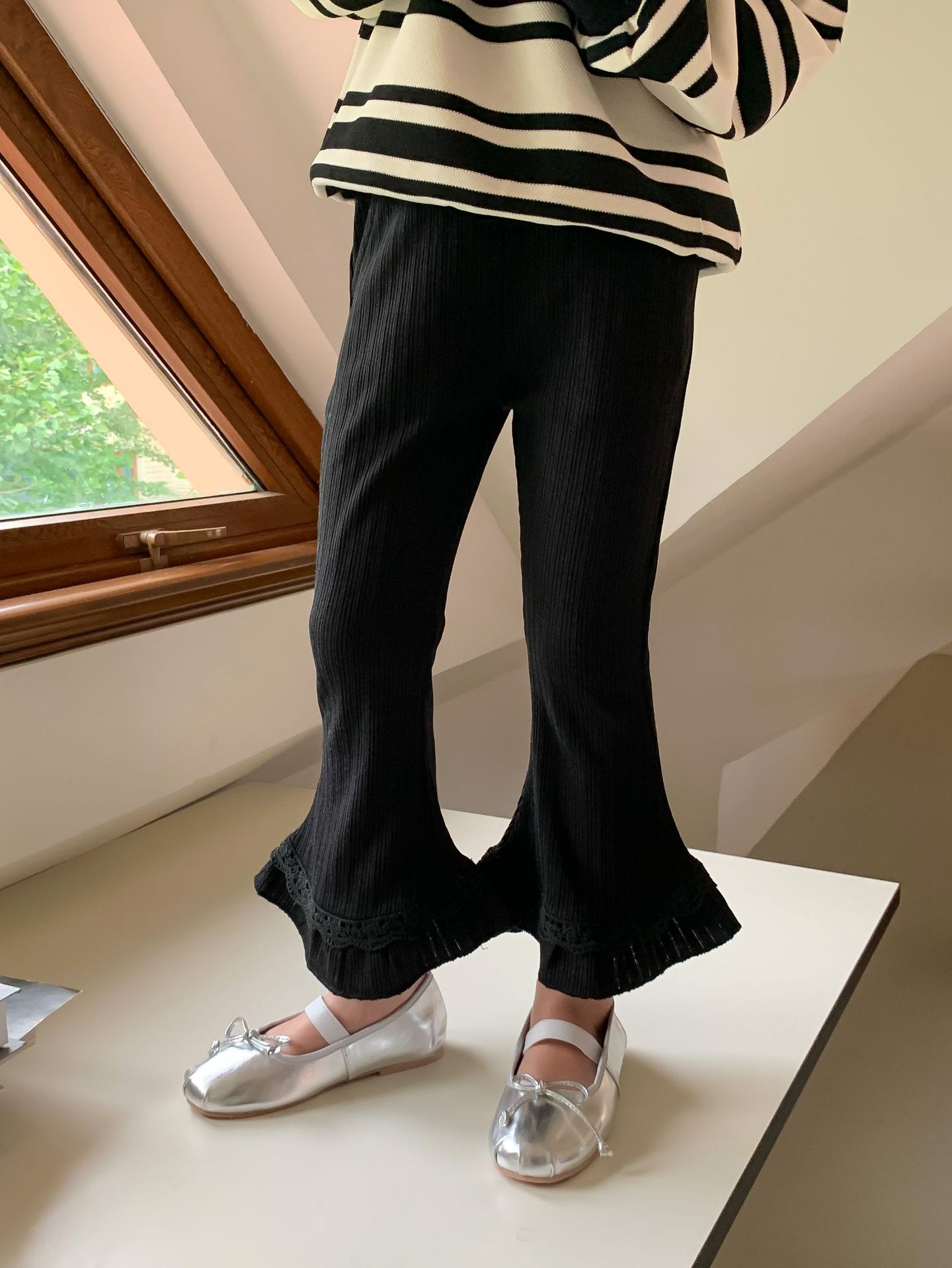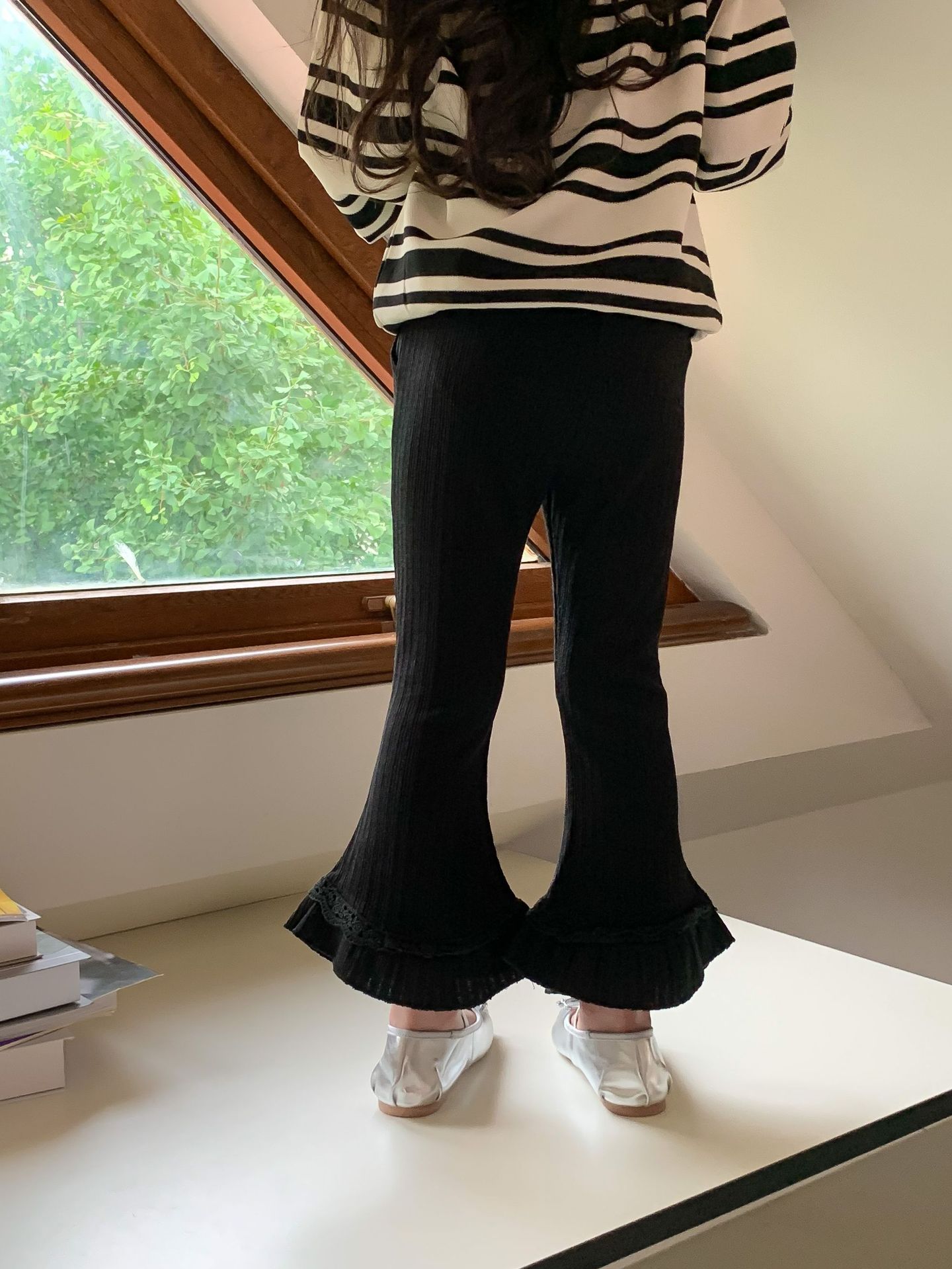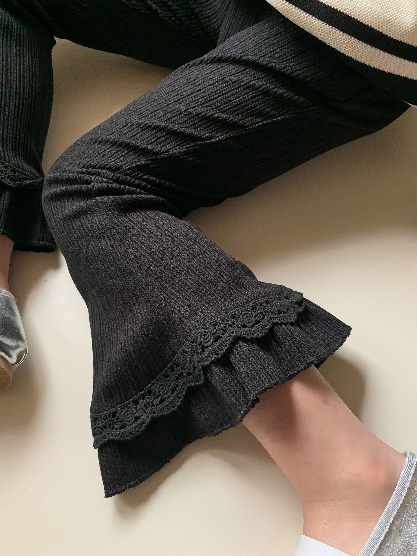 어린이 바지 2023 가을 새 여아 탄성 레이스 플레어 바지 여성용 보물 꽉 바지 어린이 핏 팬츠스토어 가기