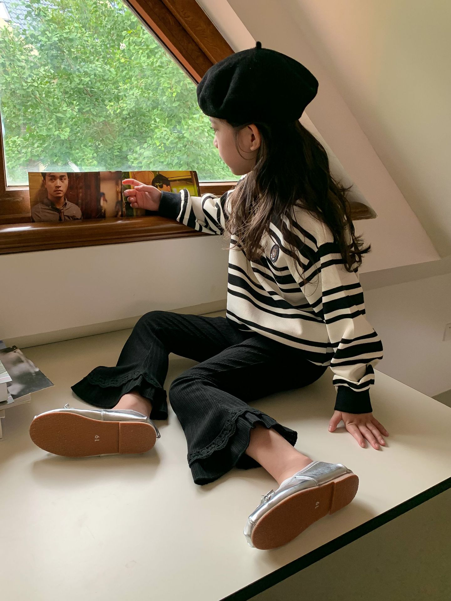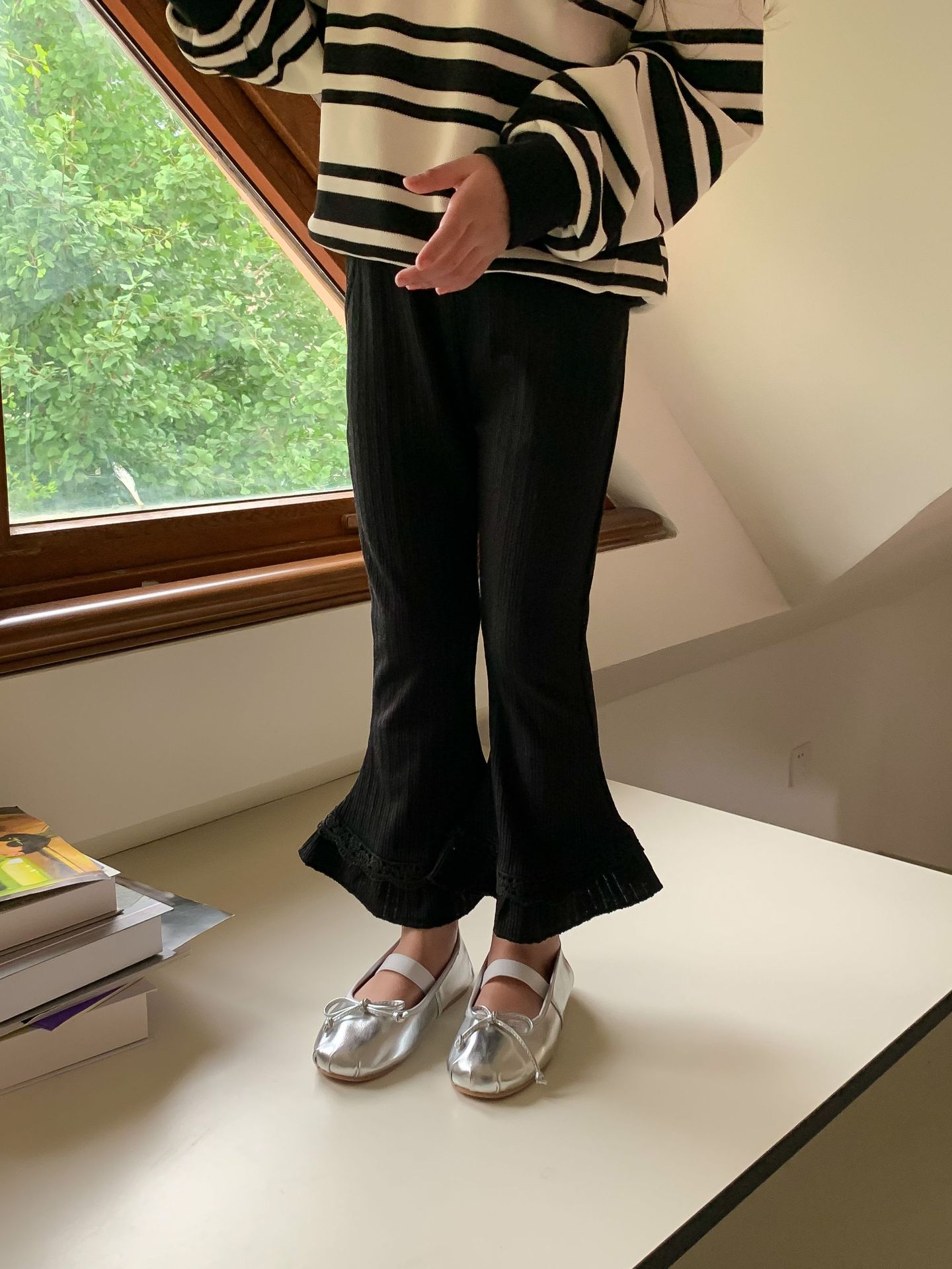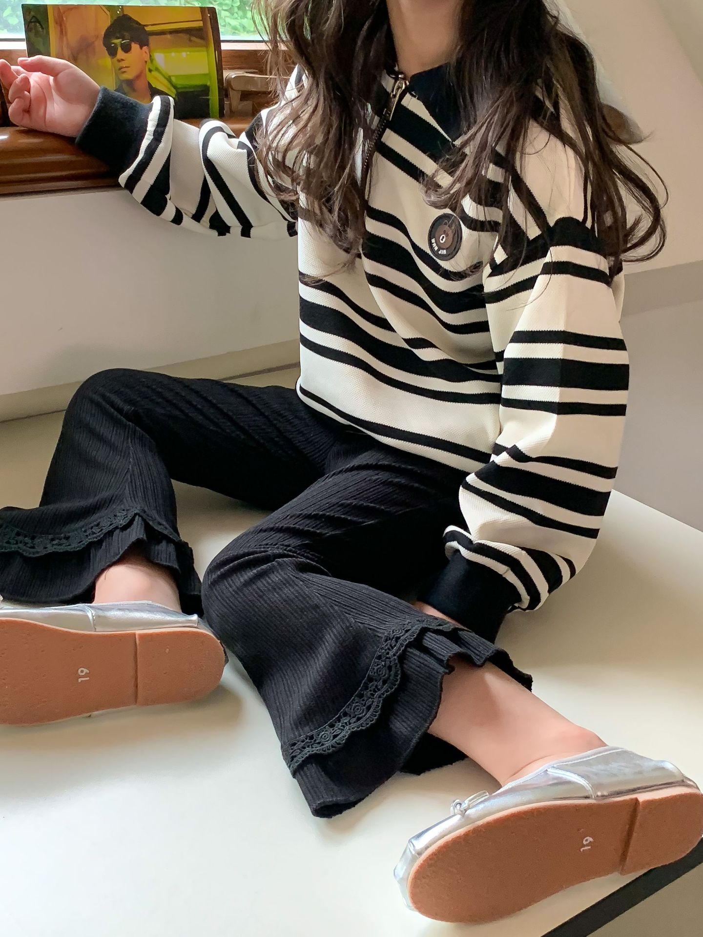 어린이 바지 2023 가을 새 여아 탄성 레이스 플레어 바지 여성용 보물 꽉 바지 어린이 핏 팬츠스토어 가기