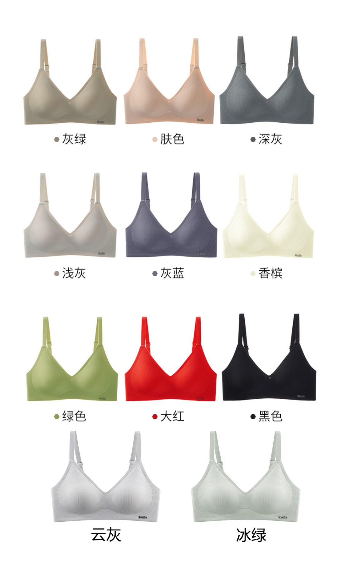 无钢圈 后调节式肩带 四排三扣