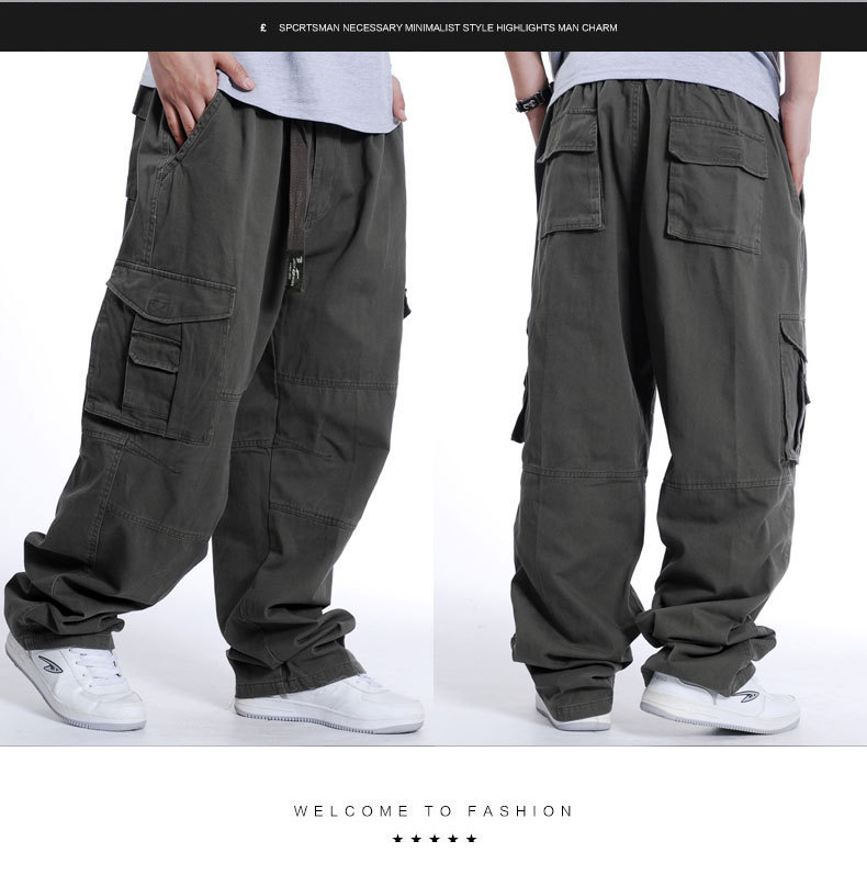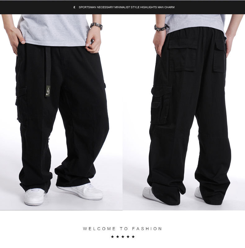 유행 뚱뚱한 남자의 플러스 사이즈 와이드 레그 팬츠 플러스 큰 사이즈 뚱뚱한 남자의 바지 힙합 느슨한 멀티 포켓 바지 K276스토어 가기