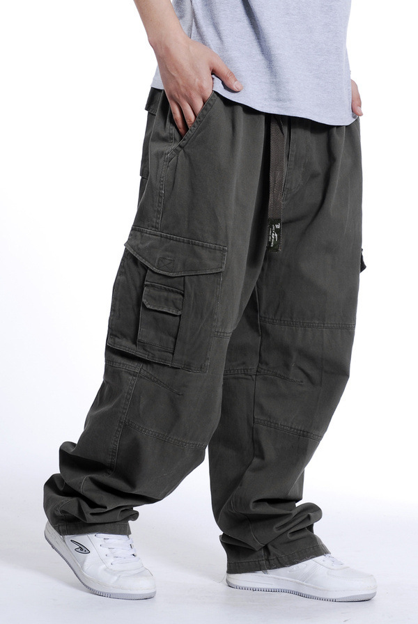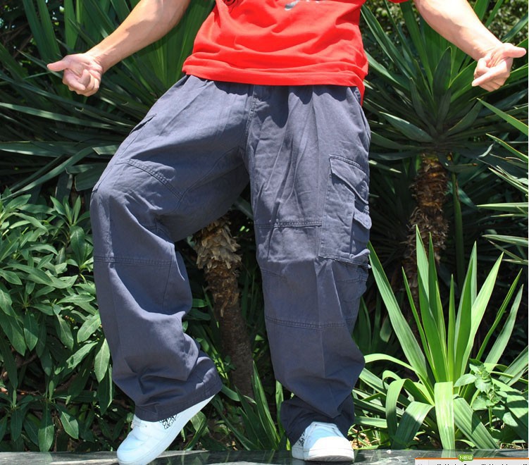 유행 뚱뚱한 남자의 플러스 사이즈 와이드 레그 팬츠 플러스 큰 사이즈 뚱뚱한 남자의 바지 힙합 느슨한 멀티 포켓 바지 K276