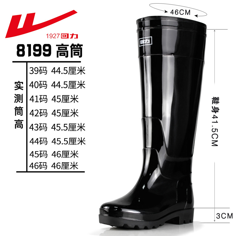상하이 Huili 8199 높이 비 신발 남자의 내마모성 미끄럼 방지 방수 긴 튜브 물 신발 남자의 노동 보호 장화 도매스토어 가기