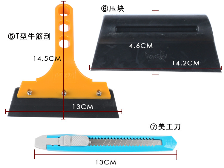 자동차 필름 도구 7종 세트, 색상 변경 필름 트리밍 실리콘 스크레이퍼, 자동차 필름 마감용 세트, 주황색 스크레이퍼스토어 가기