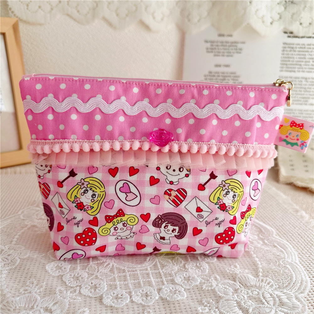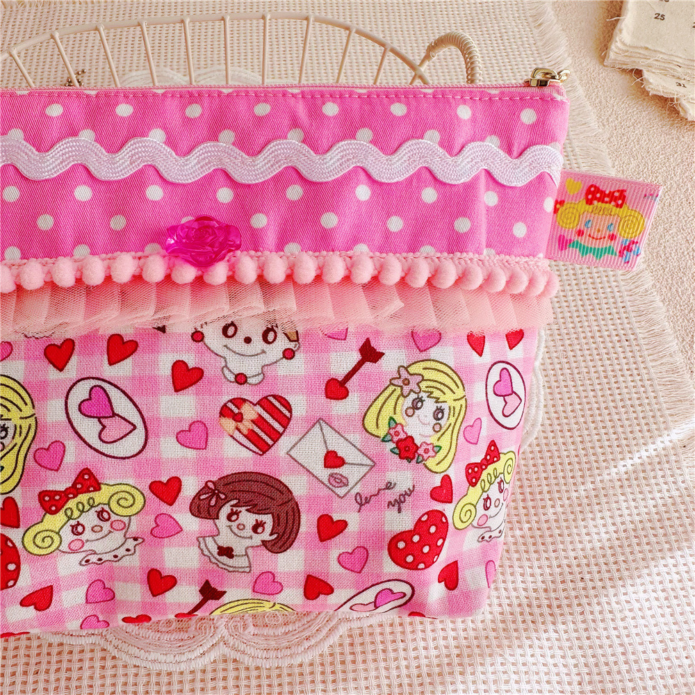 这款没有透明流沙,是纯布艺款式,正面豆豆花边蕾丝点缀,后背刺绣娃娃头布贴,整个的手感就是棉棉的 舒服的 做工精细。