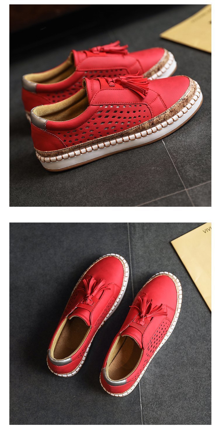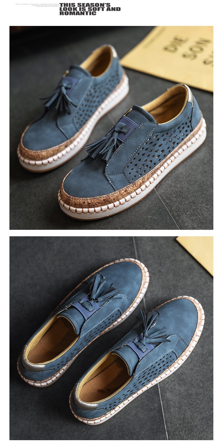 국경 간 대외 무역 소원 새로운 여성 신발 2023 중공 플러스 사이즈 술 둥근 머리 2 색 바느질 캐주얼 신발