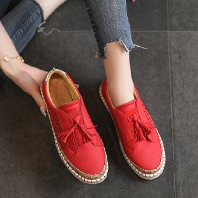 국경 간 대외 무역 소원 새로운 여성 신발 2023 중공 플러스 사이즈 술 둥근 머리 2 색 바느질 캐주얼 신발스토어 가기