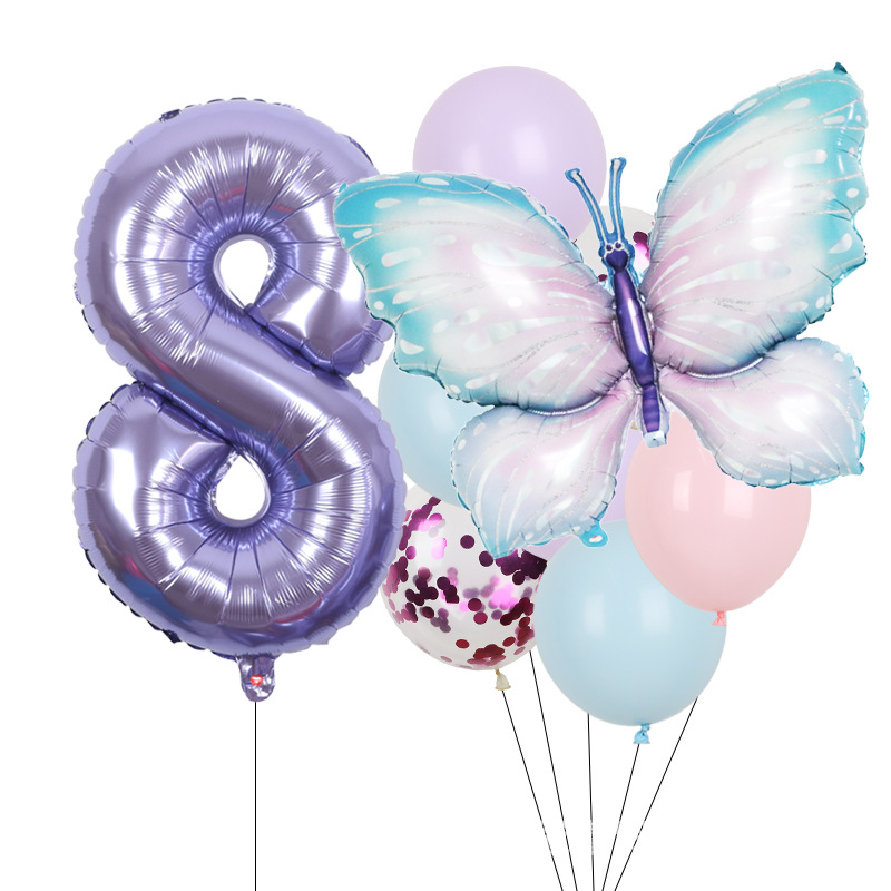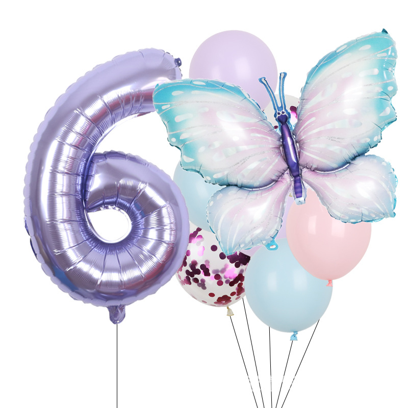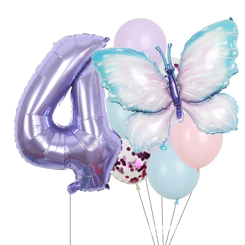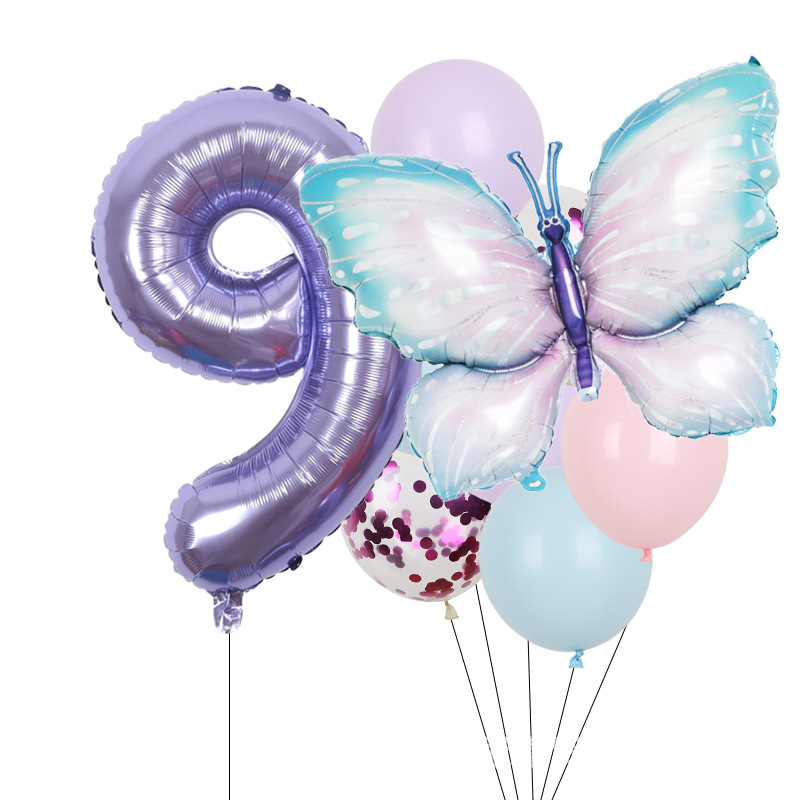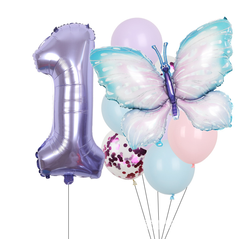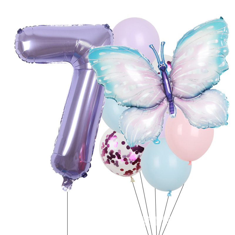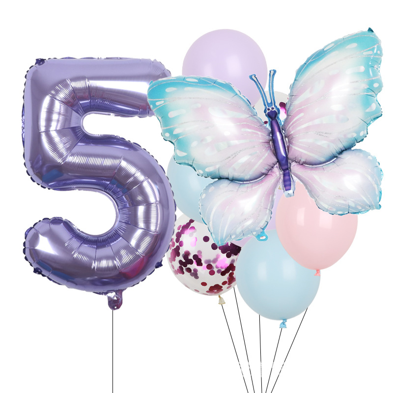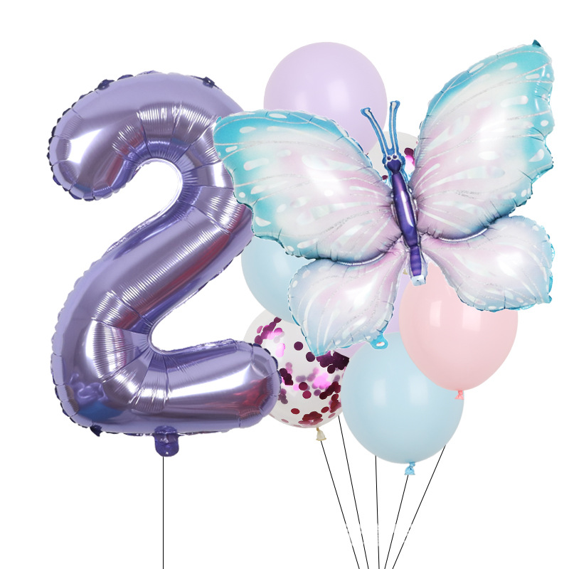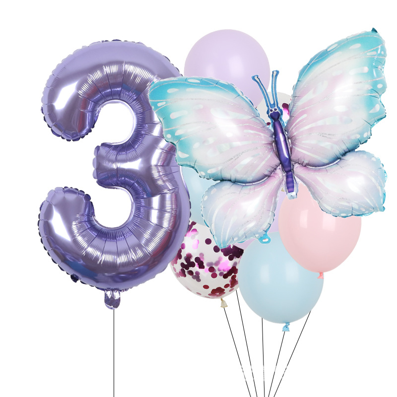 크로스 보더 블루 퍼플 나비 알루미늄 풍선 32 인치 디지털 세트 풍선 어린이 생일 파티 장면 레이아웃