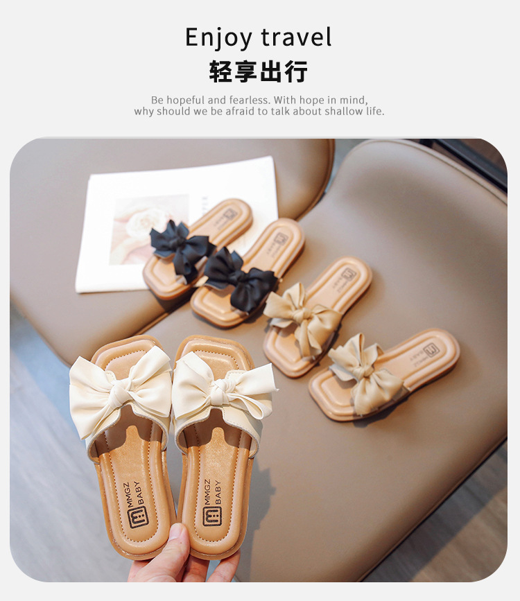 어린이 슬리퍼 2023 한국식 여름 새로운 여아 달콤한 보우 슬립온 미디 어린이 인터넷 연예인 비치 슈즈스토어 가기