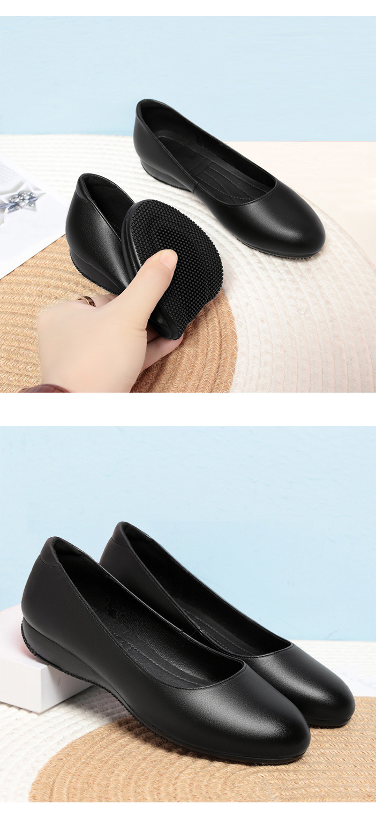 작업화 여성용 블랙 작업화 중년 및 노인 미끄럼 방지 소프트 바닥 플랫 슈즈 웨이터 신발 전문 여성 신발