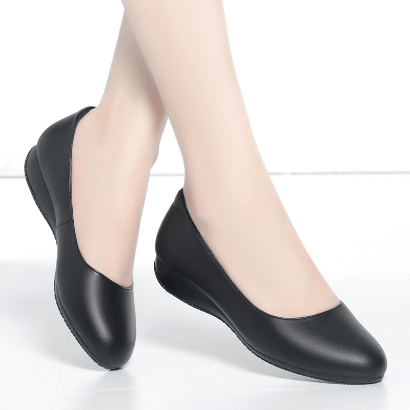 작업화 여성용 블랙 작업화 중년 및 노인 미끄럼 방지 소프트 바닥 플랫 슈즈 웨이터 신발 전문 여성 신발스토어 가기