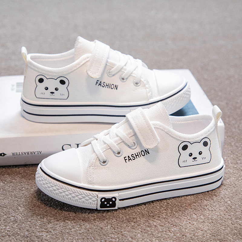 여아 캔버스 신발 2023 봄과 가을 새로운 부드러운 밑창 캐주얼 보드 신발 모든 일치 어린이 흰색 신발 여성 신발스토어 가기