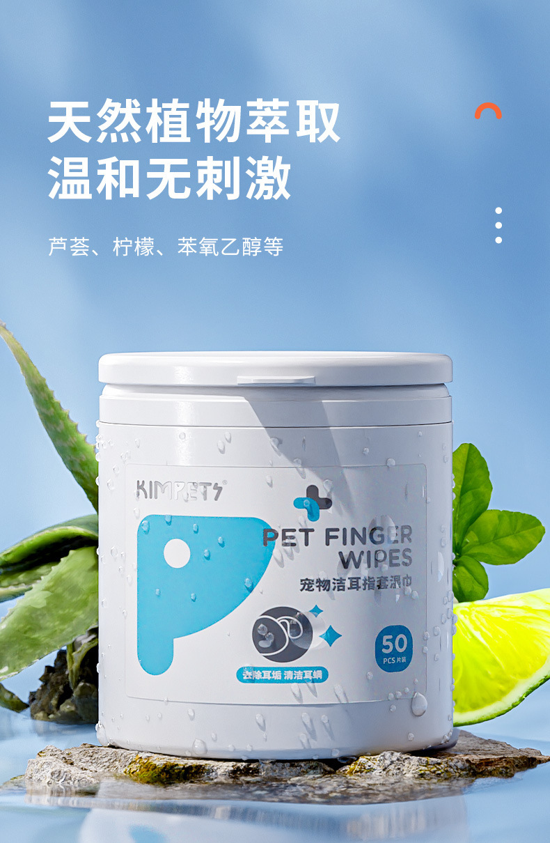 • 애완 동물 귀 청소 손가락 물티슈 50 개 팩