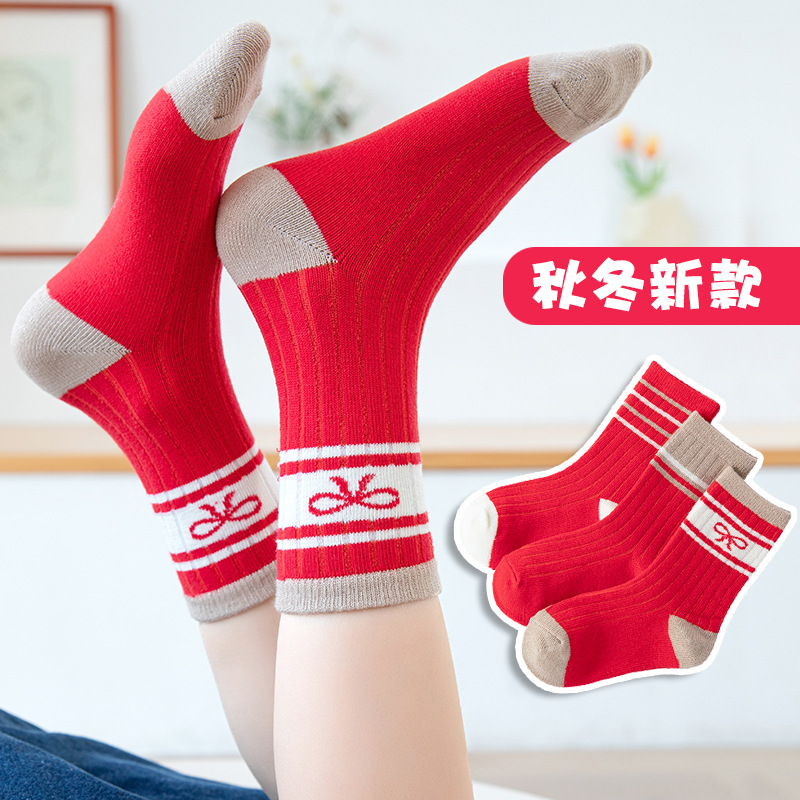 어린이 면 양말 남아 및 여아 빨간 양말 일본식 중년 및 노인 어린이 유행 양말 귀여운 활 아기의 중간 및 긴 스타킹