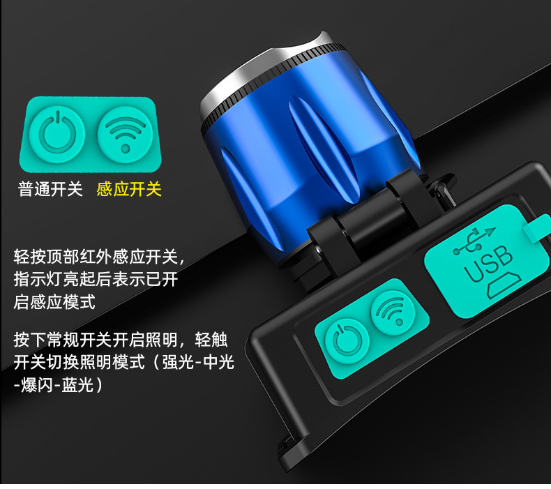 인덕션 바이올렛 헤드 라이트 강한 조명 충전 헤드 마운트 조명 손전등 긴 내구성 야간 낚시 듀얼 광원 램프스토어 가기