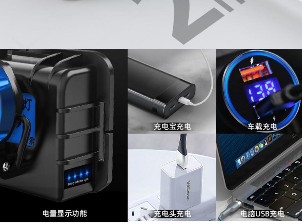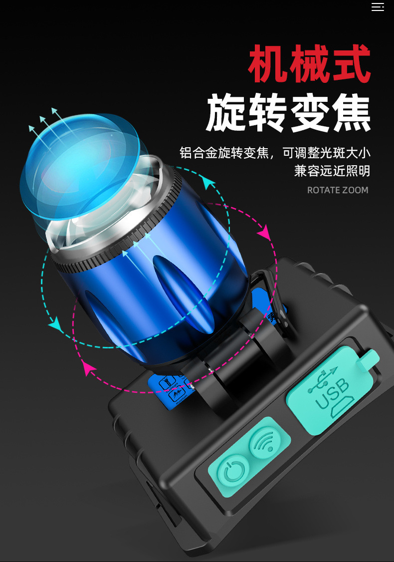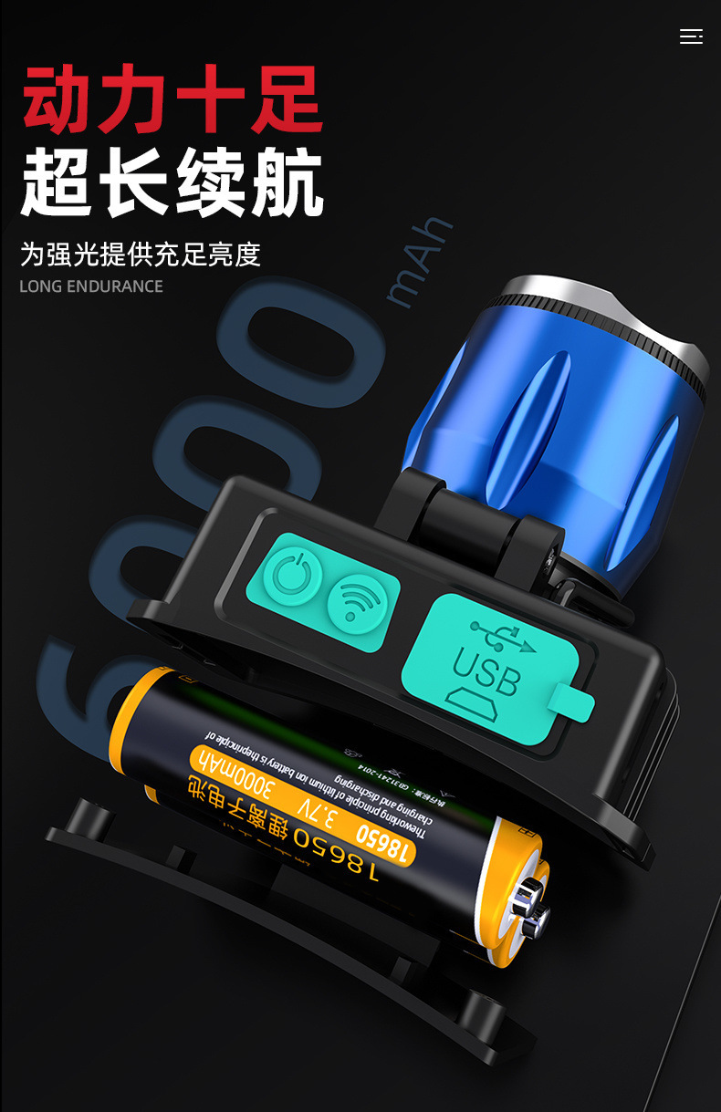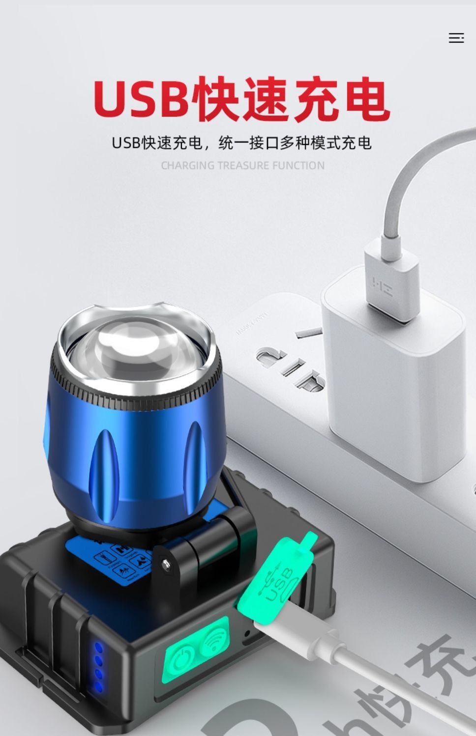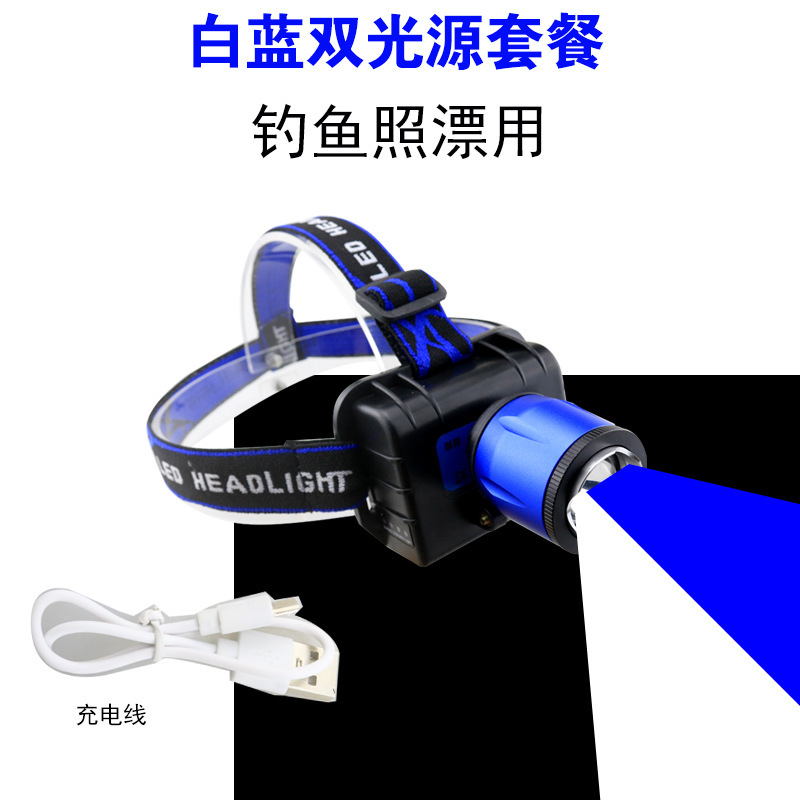 인덕션 바이올렛 헤드 라이트 강한 조명 충전 헤드 마운트 조명 손전등 긴 내구성 야간 낚시 듀얼 광원 램프