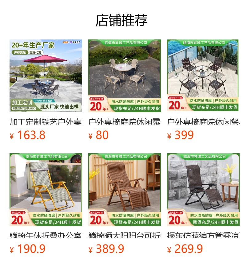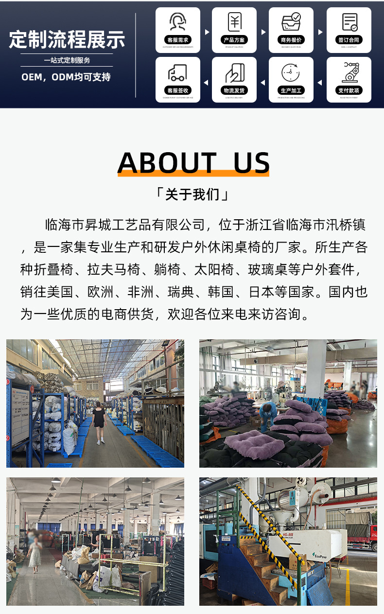 因为我们有20多年的户外家具生产经验,口碑好,深受品牌商青睐,所以我们的工厂更值得广大群体的信赖,违约风险低。