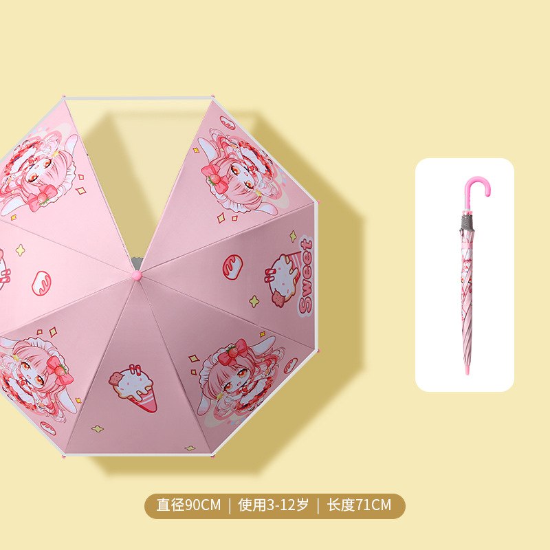 소년과 소녀 우산 만화 귀여운 소녀 유치원 초등학생을위한 긴 손잡이 우산 수동 경량 채광창 작은 우산
