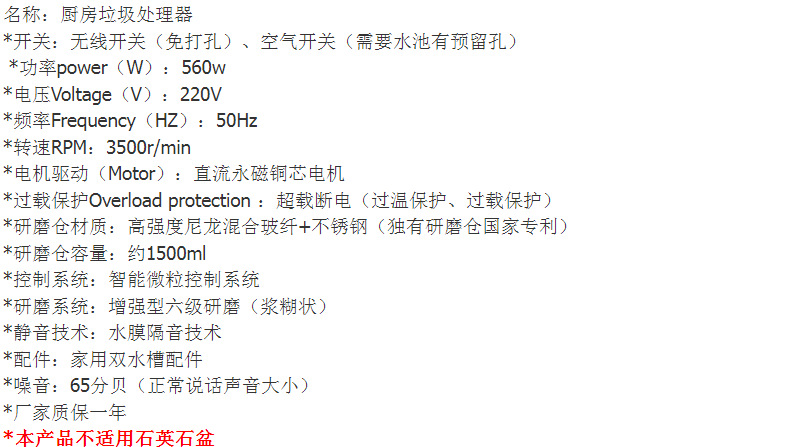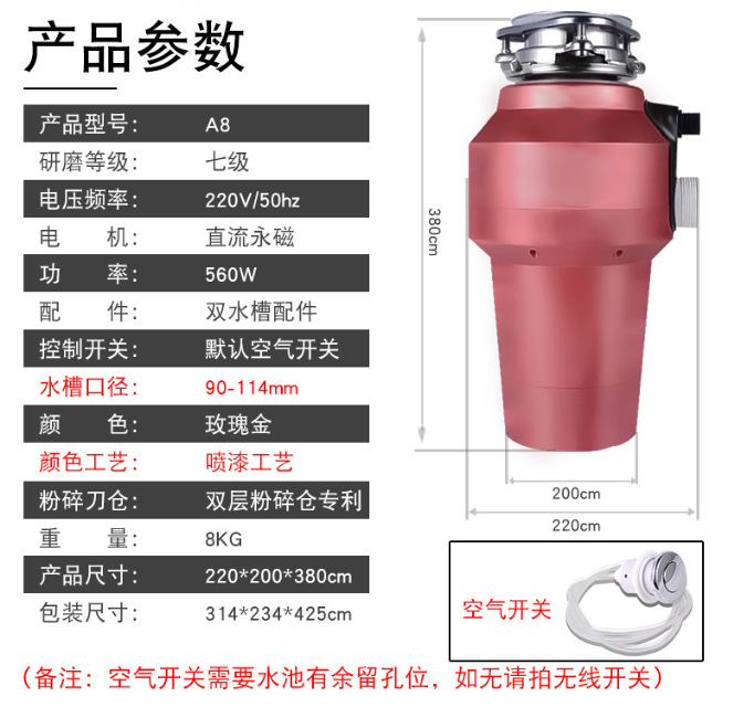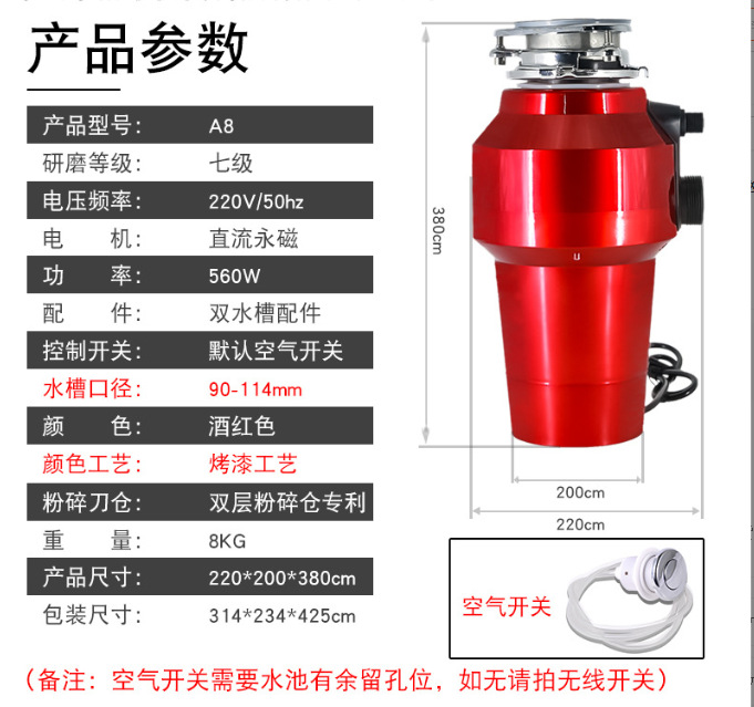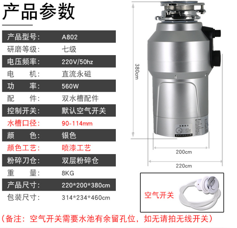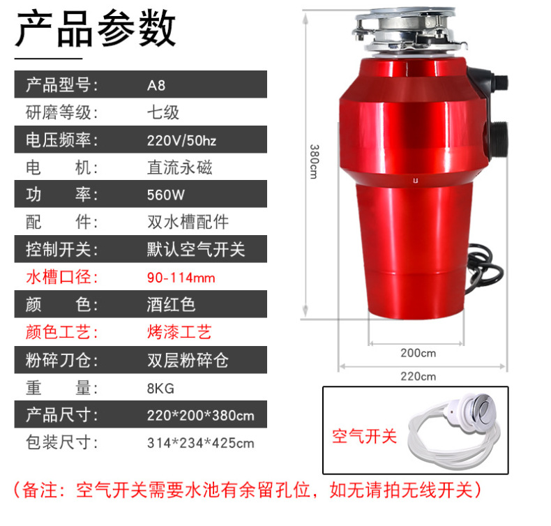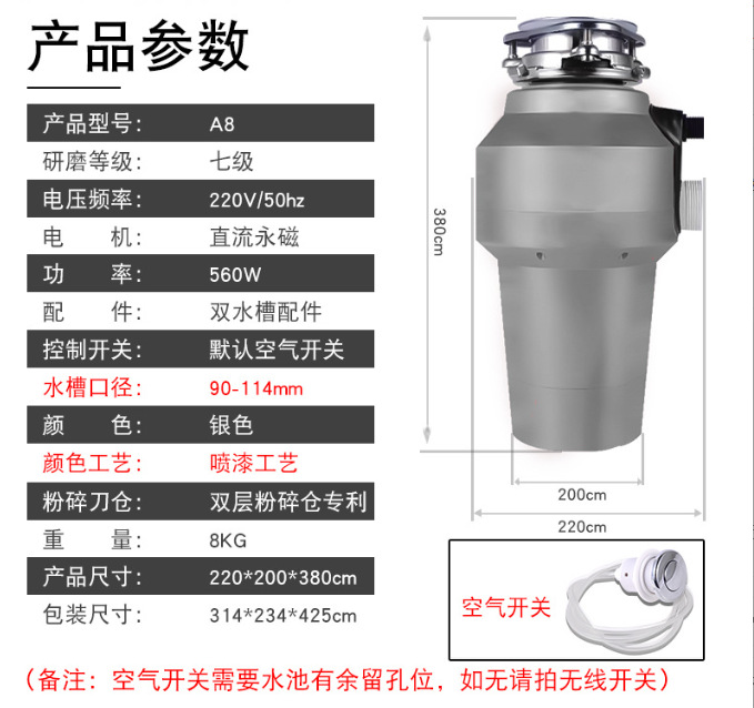 쓰레기 처리기 가정용 식품 주방 프로세서 싱크대 부엌 폐기물 분쇄기 잔류 쓰레기 식품