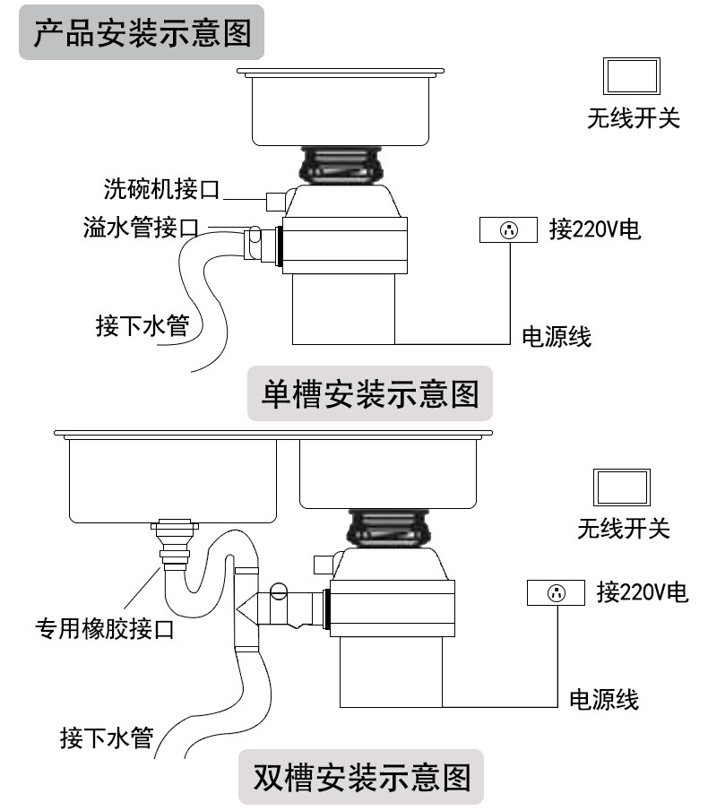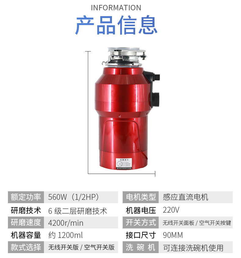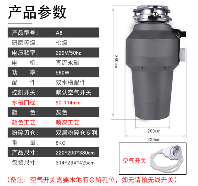 쓰레기 처리기 가정용 식품 주방 프로세서 싱크대 부엌 폐기물 분쇄기 잔류 쓰레기 식품스토어 가기