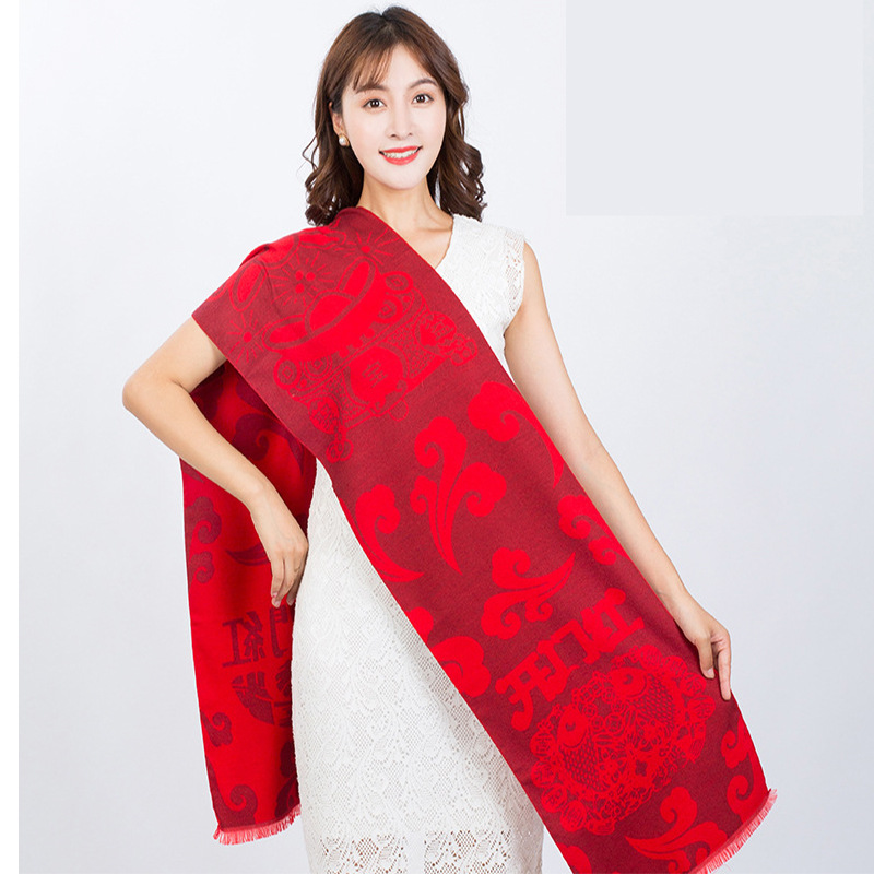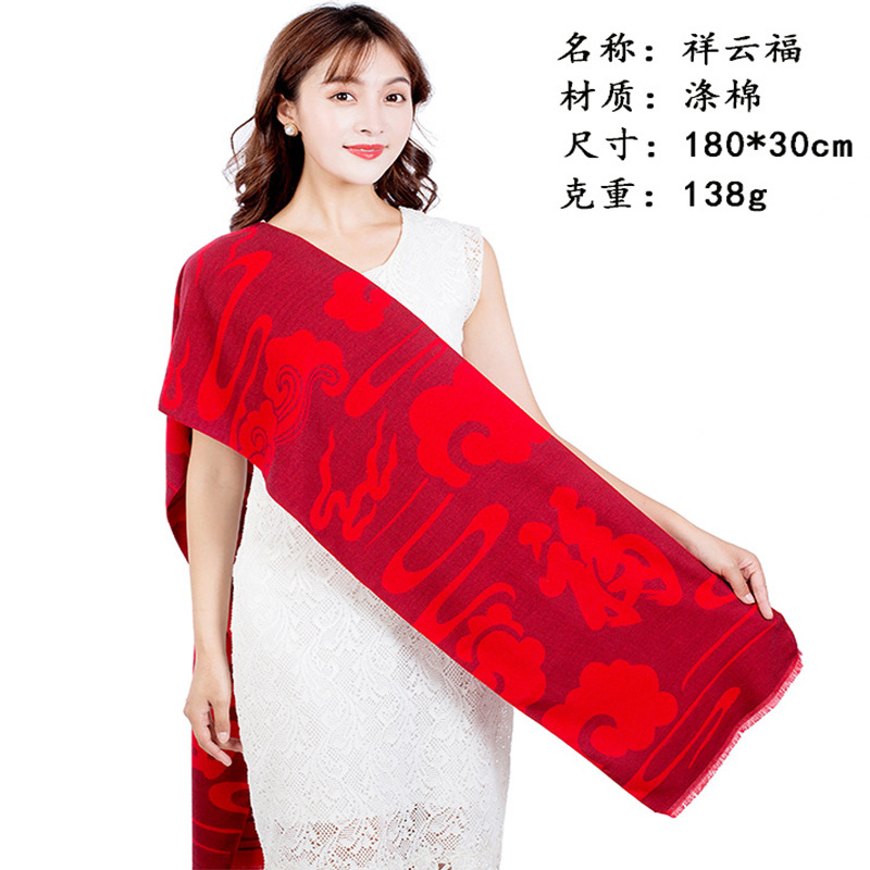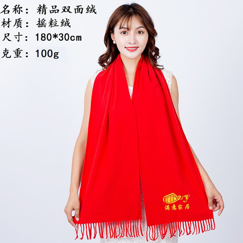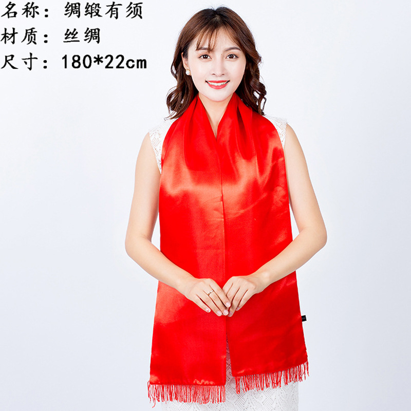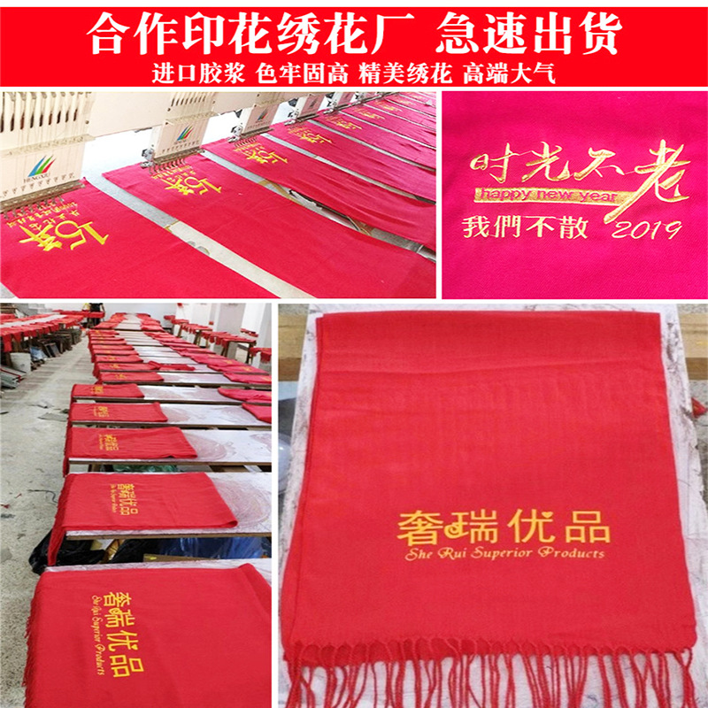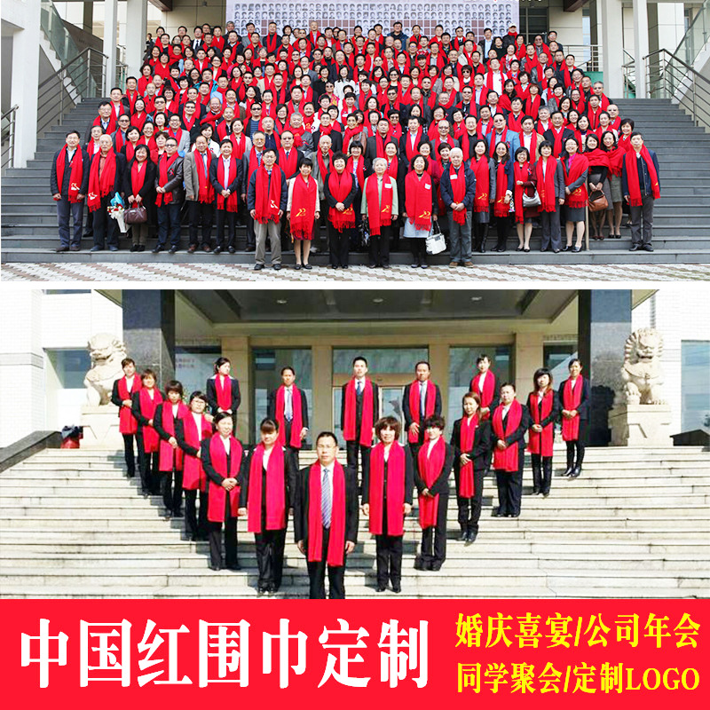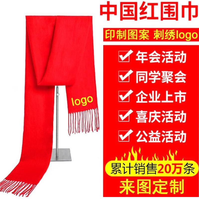 중국 레드 스카프 연례회 개회식 학생 모임 활동 인쇄 숄 자수 인쇄 스카프 선물스토어 가기
