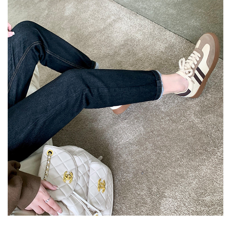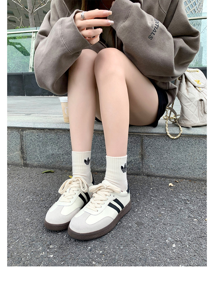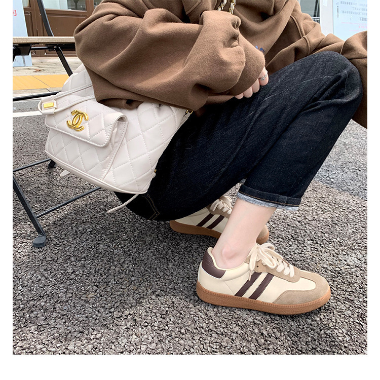 포도 엄마 같은 스타일 가죽 흰색 신발 여성의 빈티지 모든 매치 컬러 매칭 두꺼운 밑창 캐주얼 스포츠 보드 신발 플러스 사이즈 독일 훈련 신발