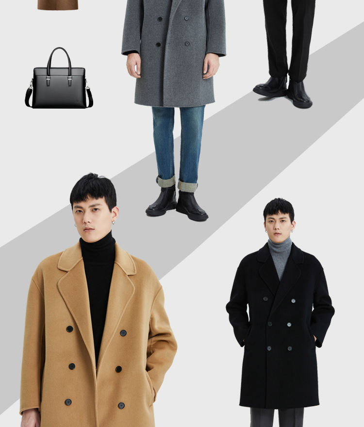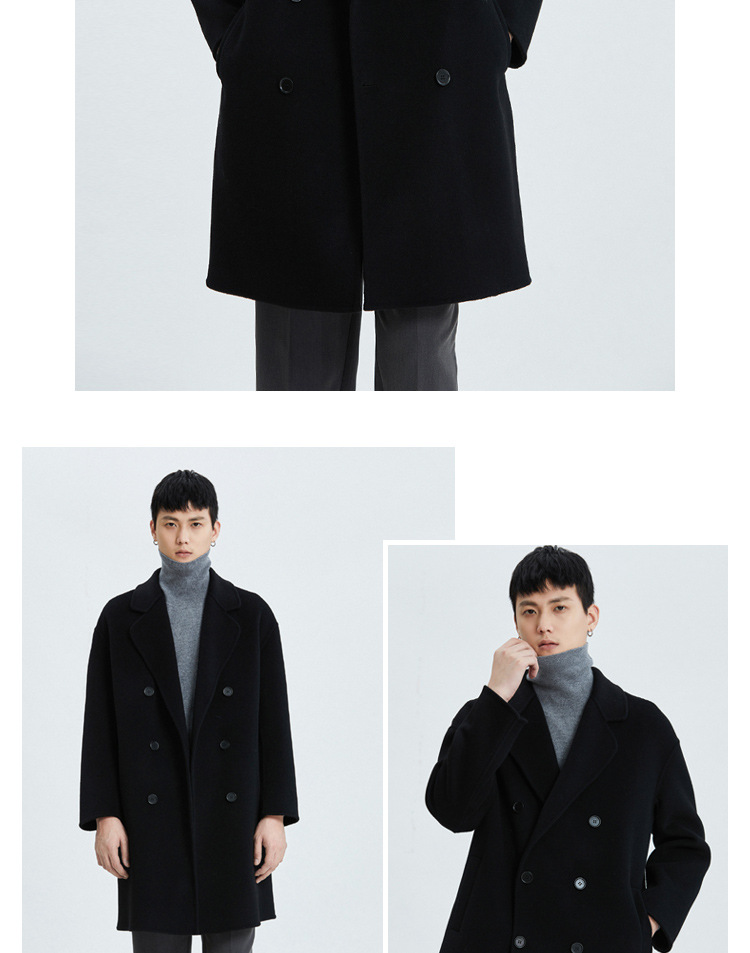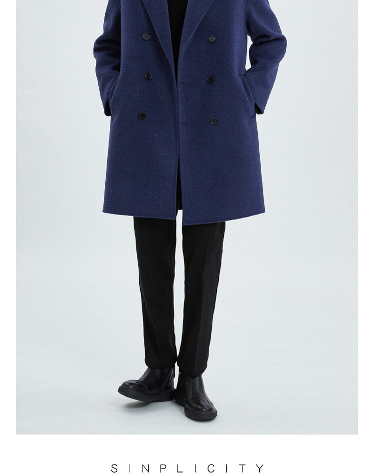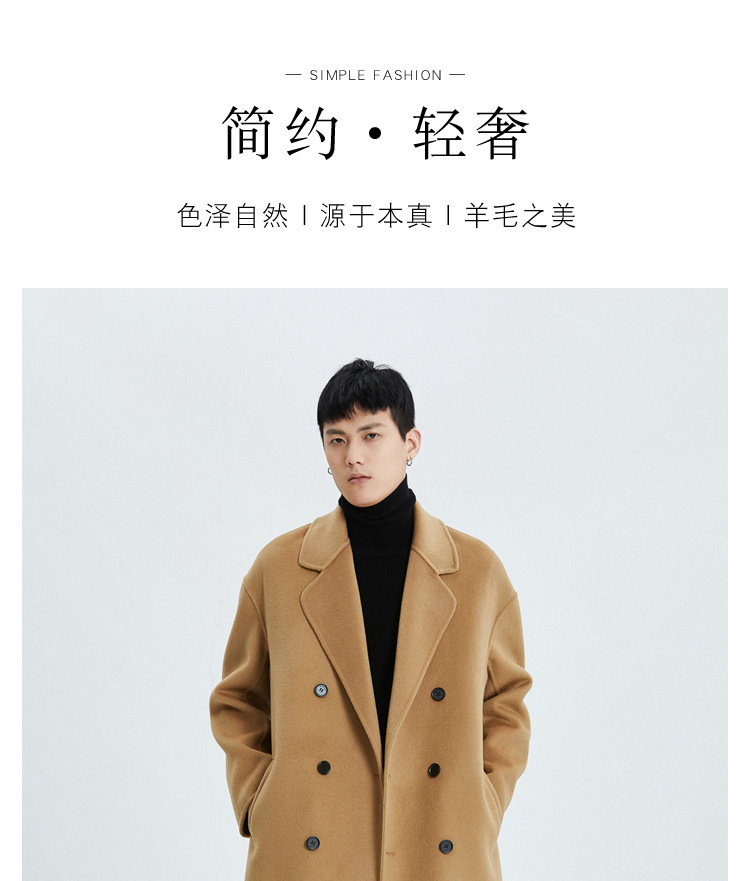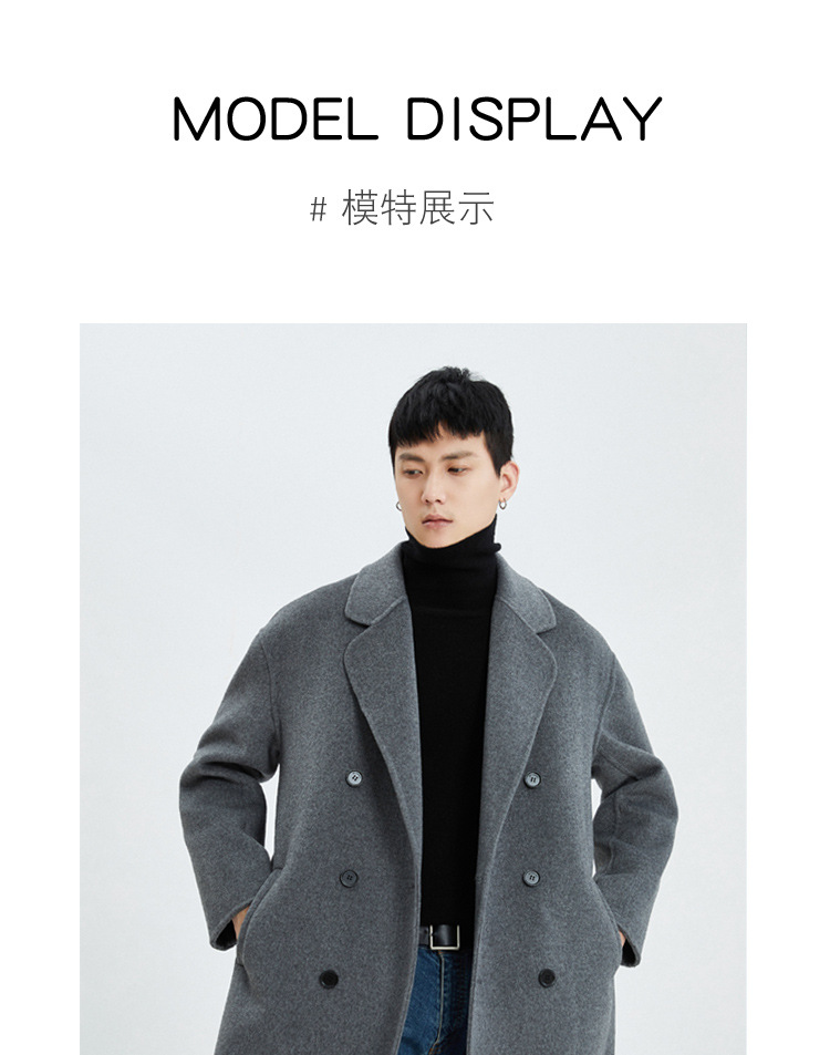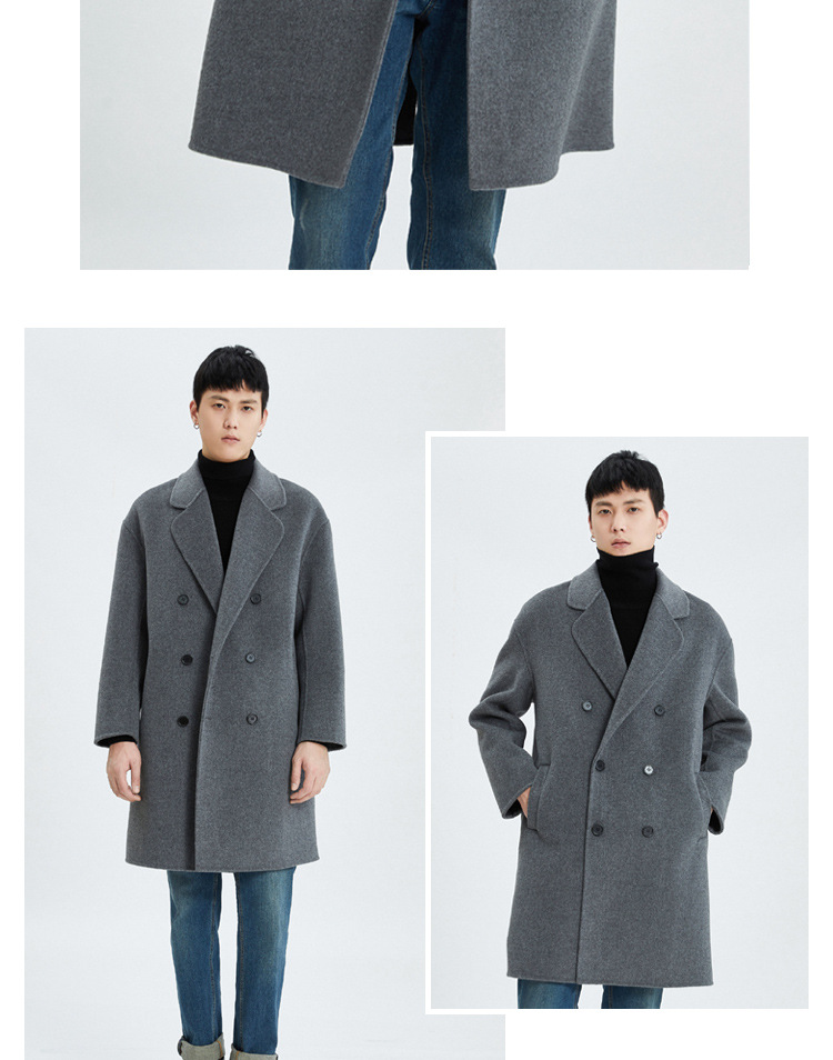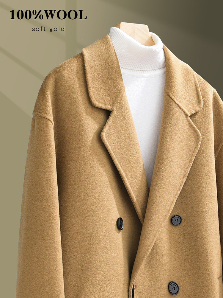 가을과 겨울 양면 캐시미어 코트 남성용 느슨한 다운 숄더 더블 브레스트 울 코트 안티 시즌 미드 길이 코트스토어 가기