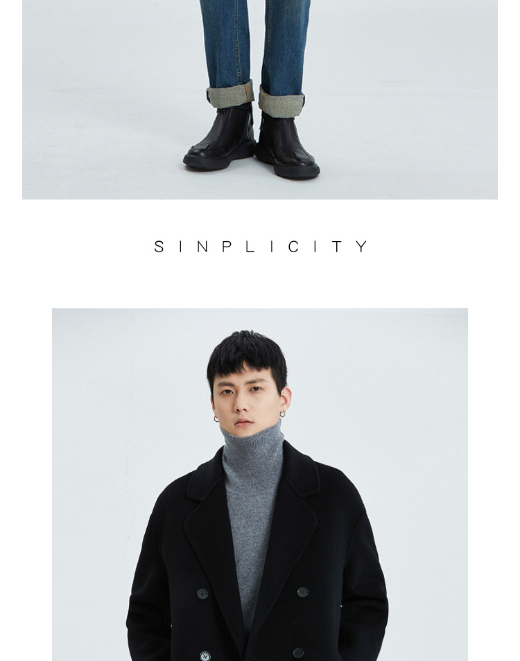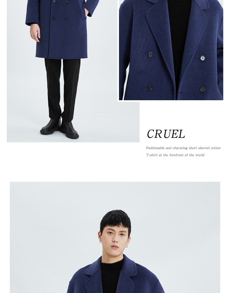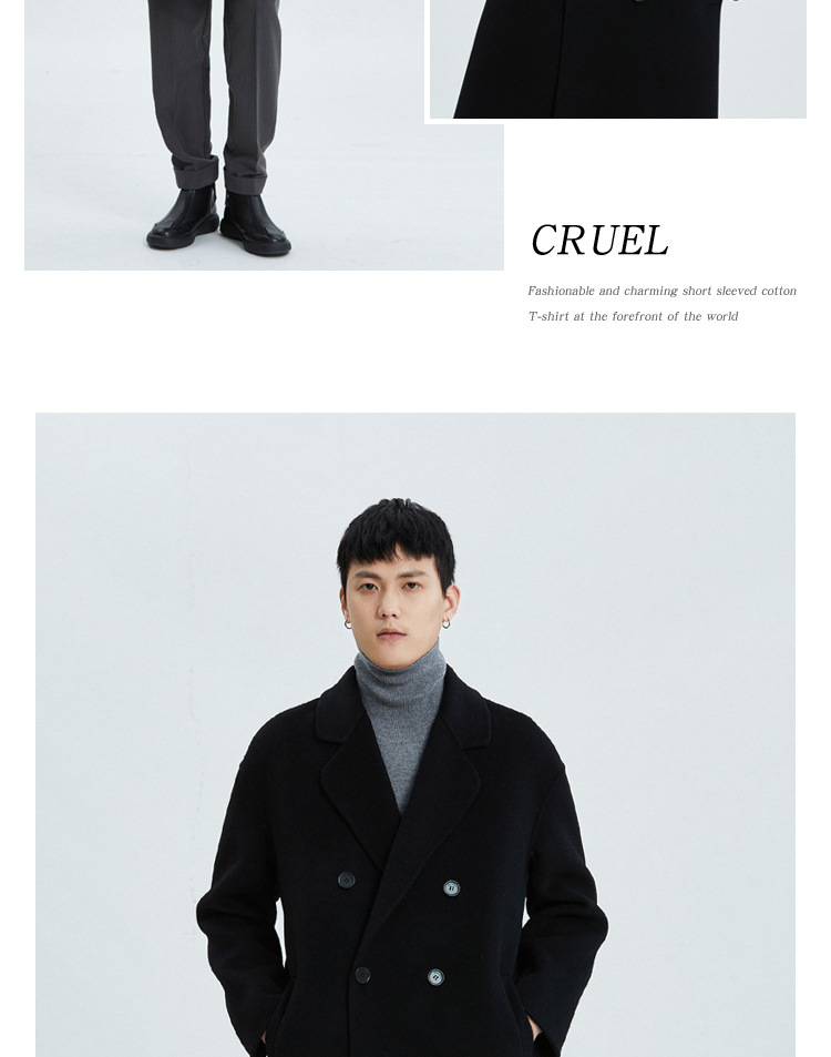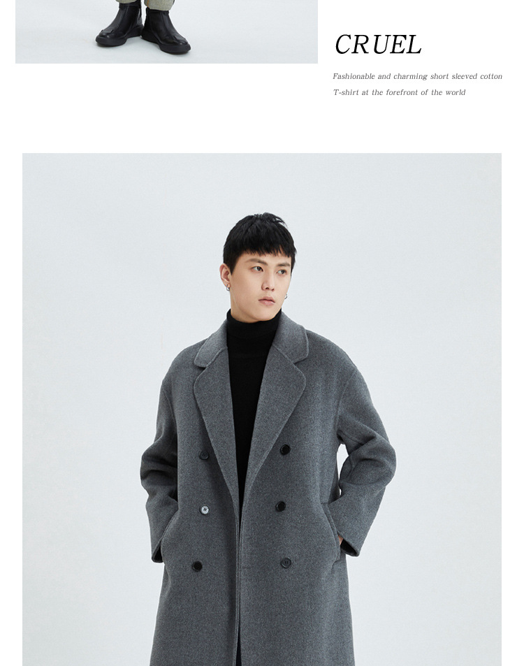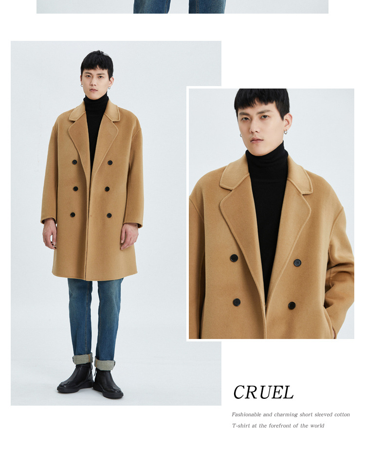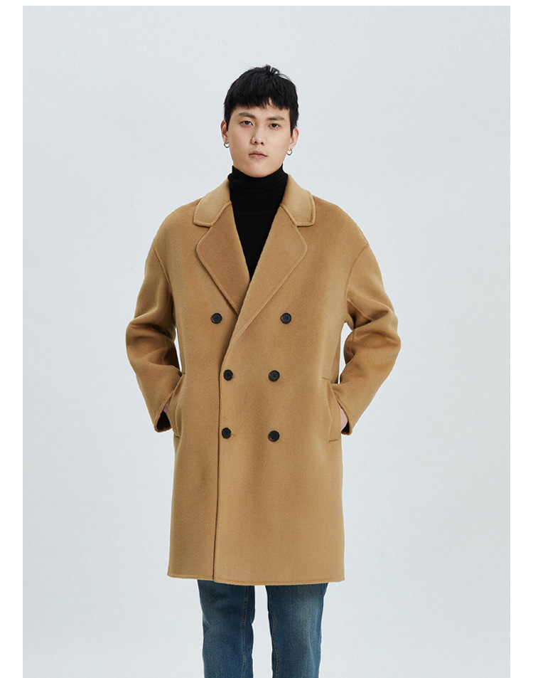 가을과 겨울 양면 캐시미어 코트 남성용 느슨한 다운 숄더 더블 브레스트 울 코트 안티 시즌 미드 길이 코트