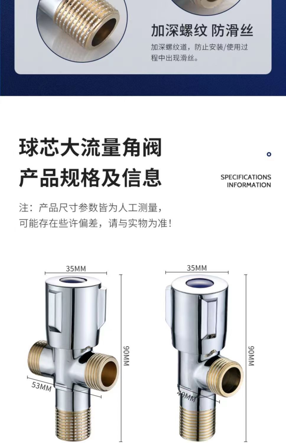 全铜加厚三通角阀 一进二出双出水 多功能三角阀4分接口