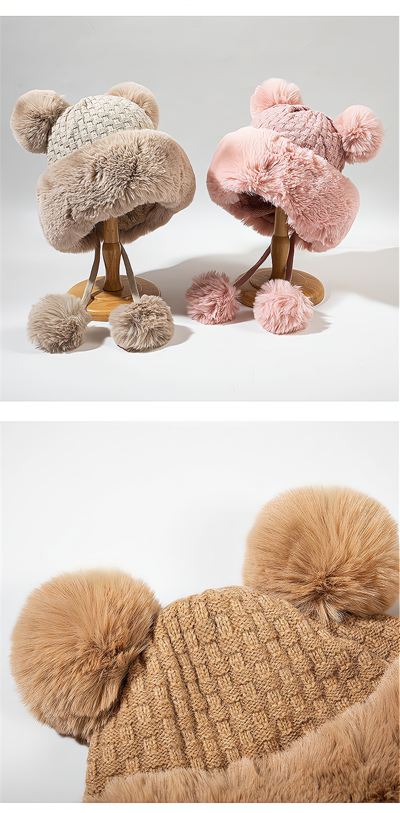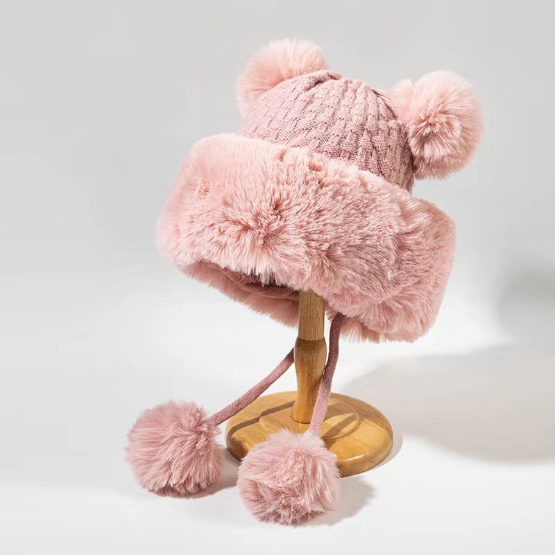 가을과 겨울 새 모자 여자의 귀여운 기모 따뜻한 모자 니트 모자 귀 보호 한국식 착용