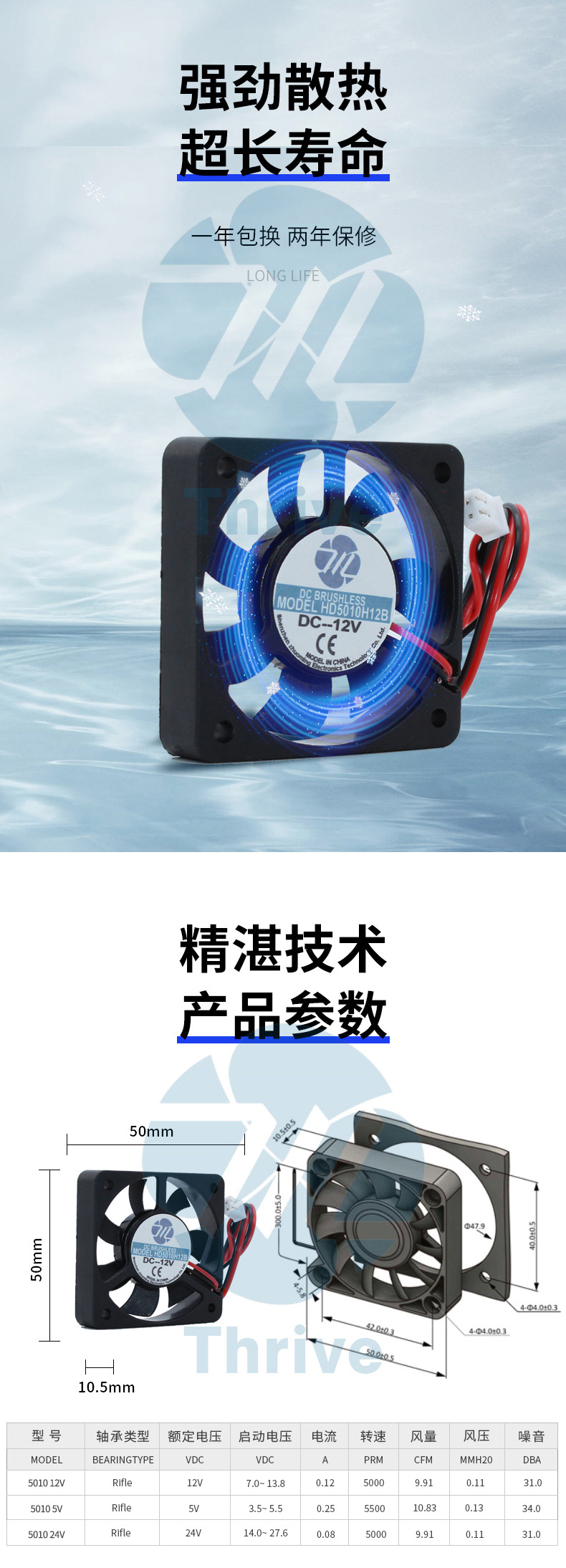 5010 냉각 팬 5v 12 24V 5cm CPU 볼 베어링 노트북 소형 팬 무음 초박형스토어 가기