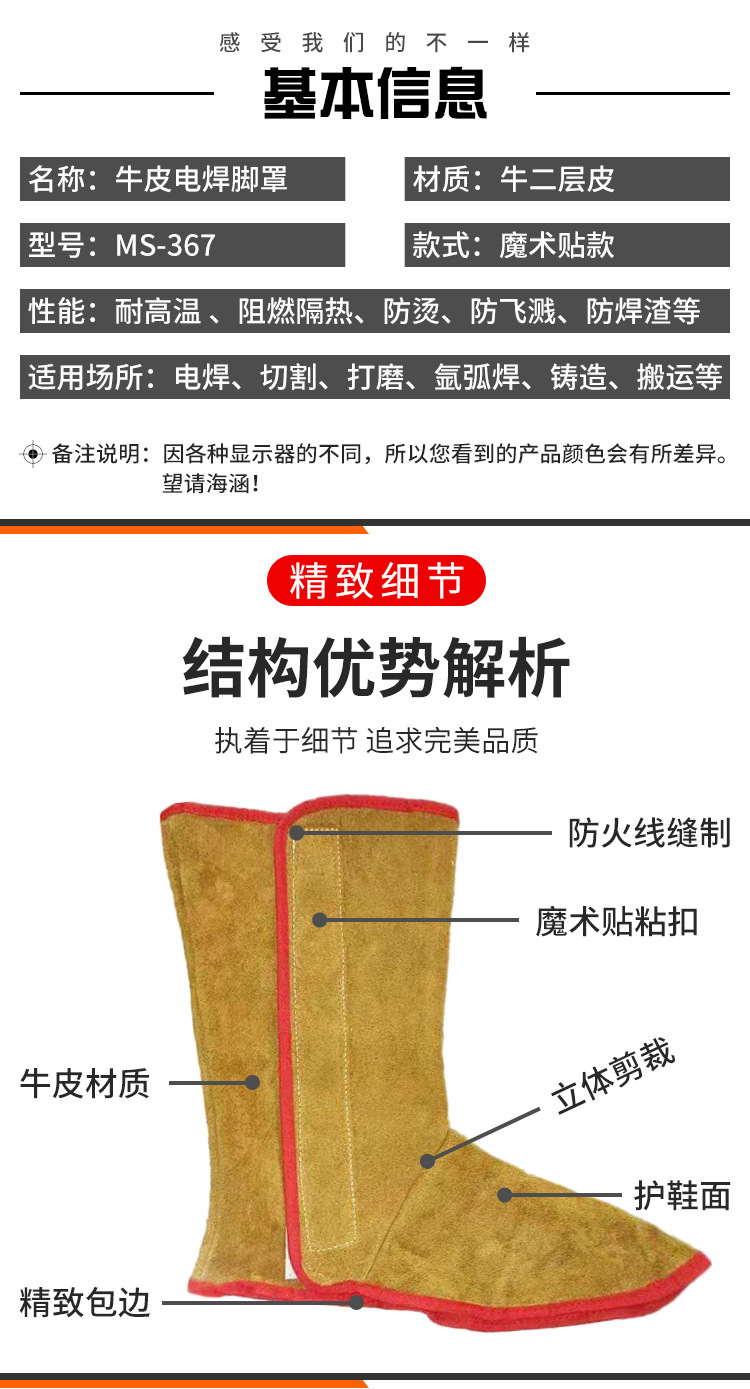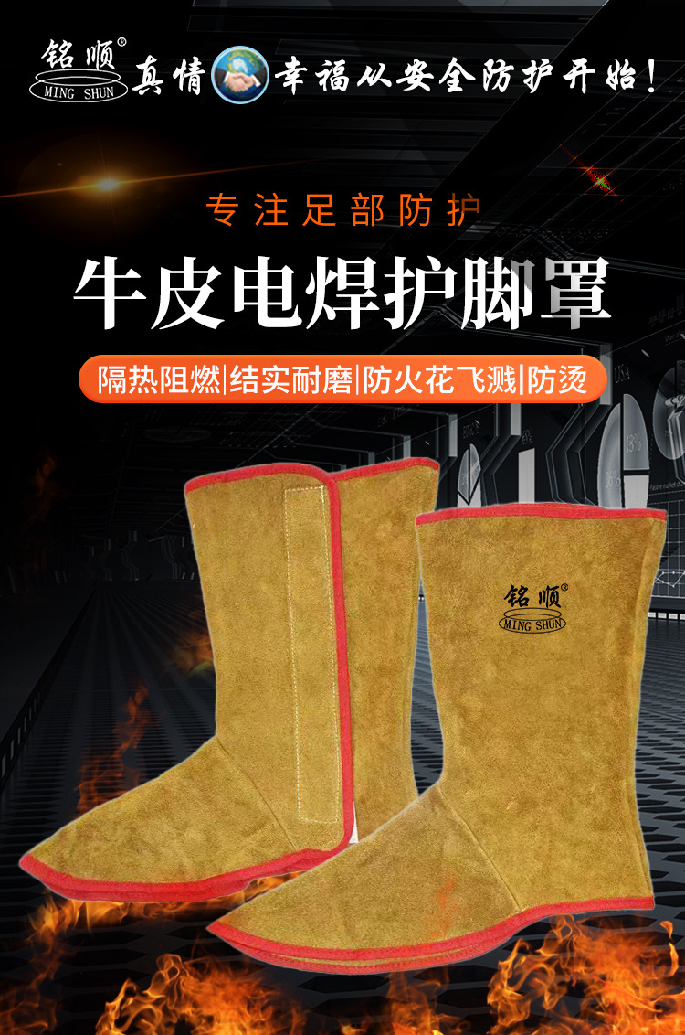 도매 Mingshun cowhide 용접 발 커버 367 내화 꽃 안티 scald 발 커버 연장 용접기 노동 보호 발 커버스토어 가기