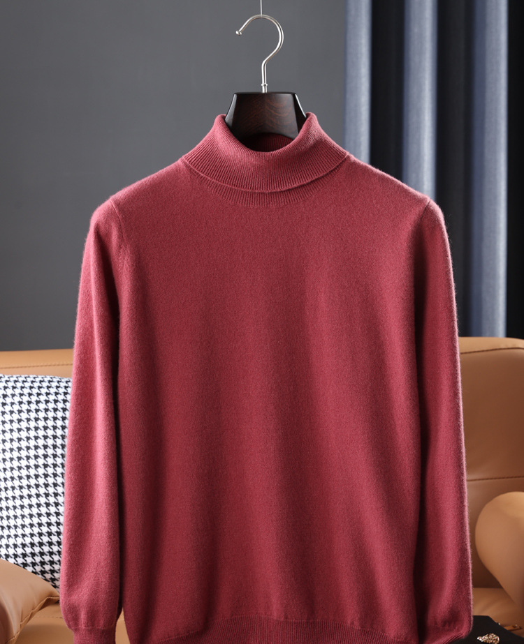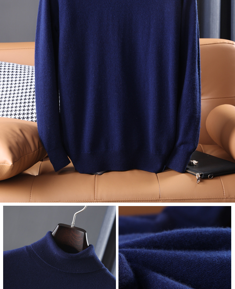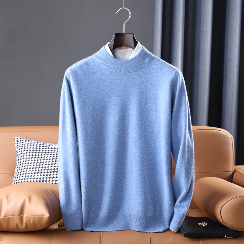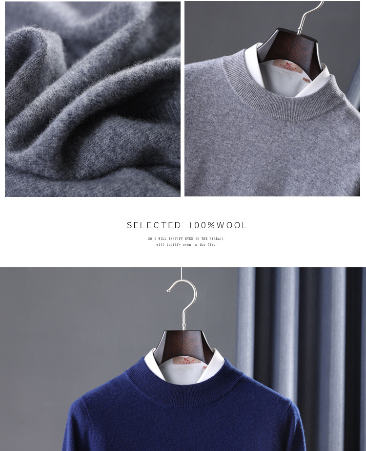 가을과 겨울 하이 칼라 캐시미어 스웨터 남성용 옷깃 스웨터 100 퓨어 울 스웨터 하프 하이 칼라 터틀넥 두꺼운베이스 니트