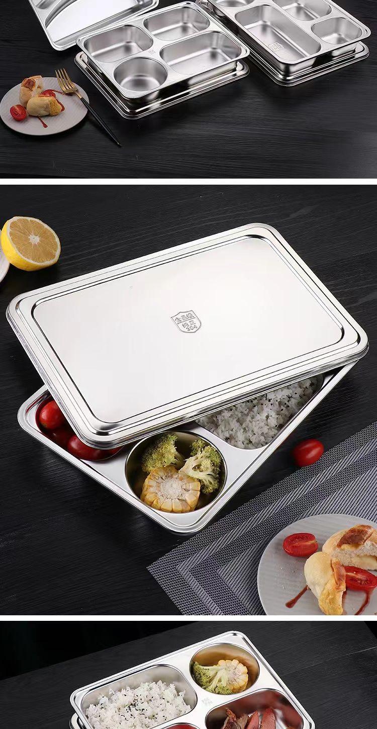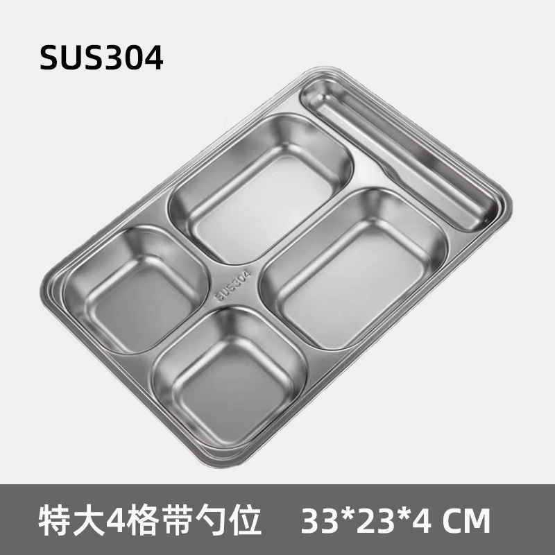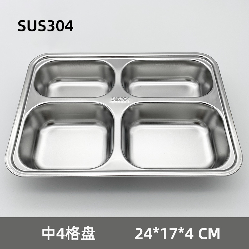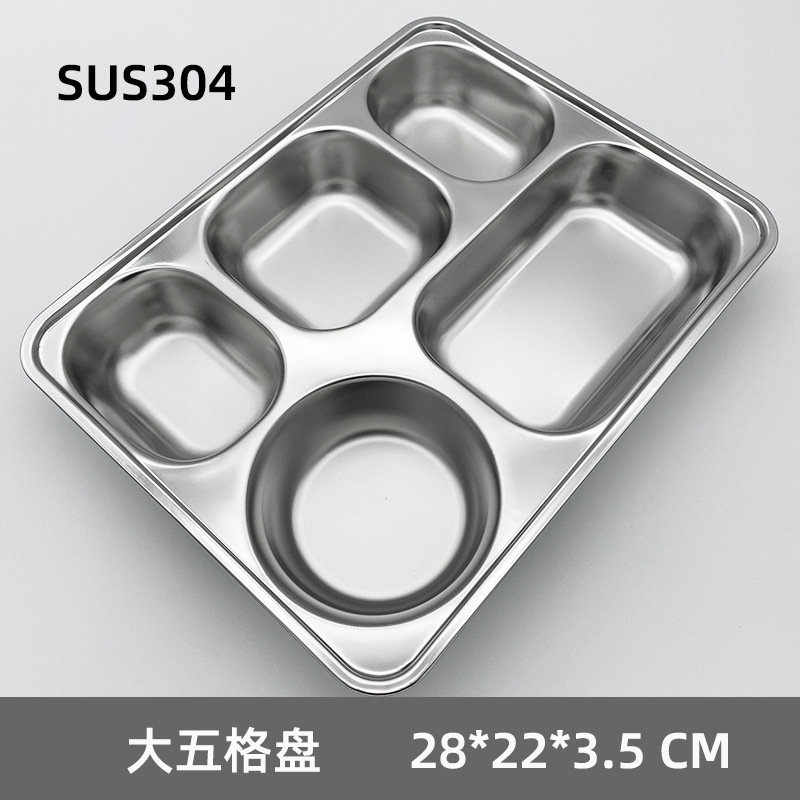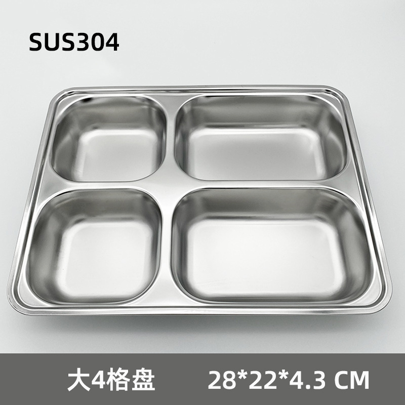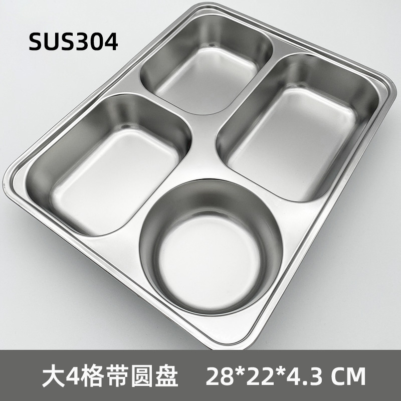 식품등급 304 스테인리스 디너접시, 성인식당 패스트푸드접시, 어린이 및 학생용 밥접시, 4칸 및 5칸 디너접시스토어 가기