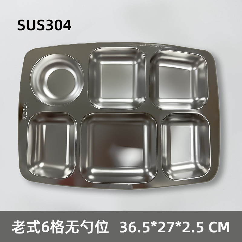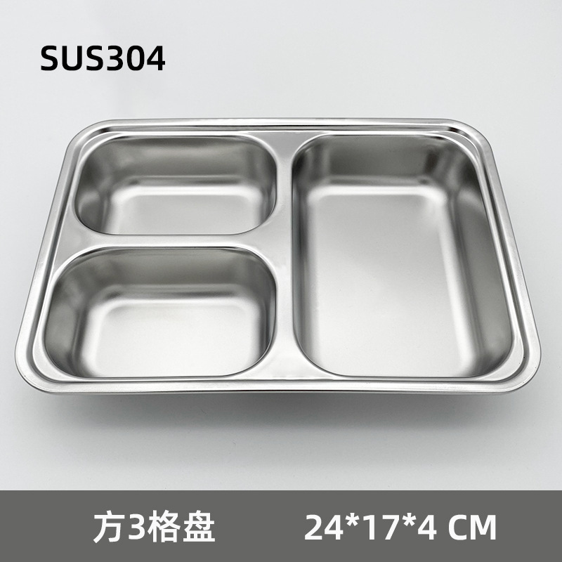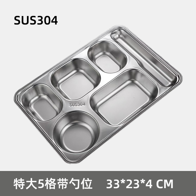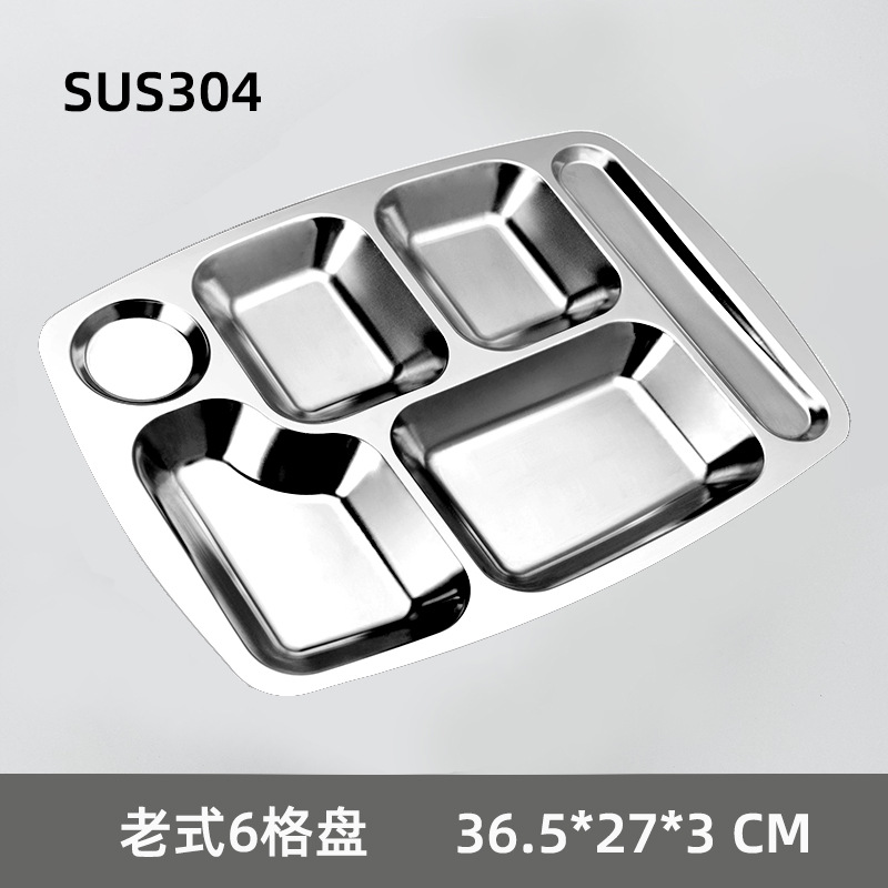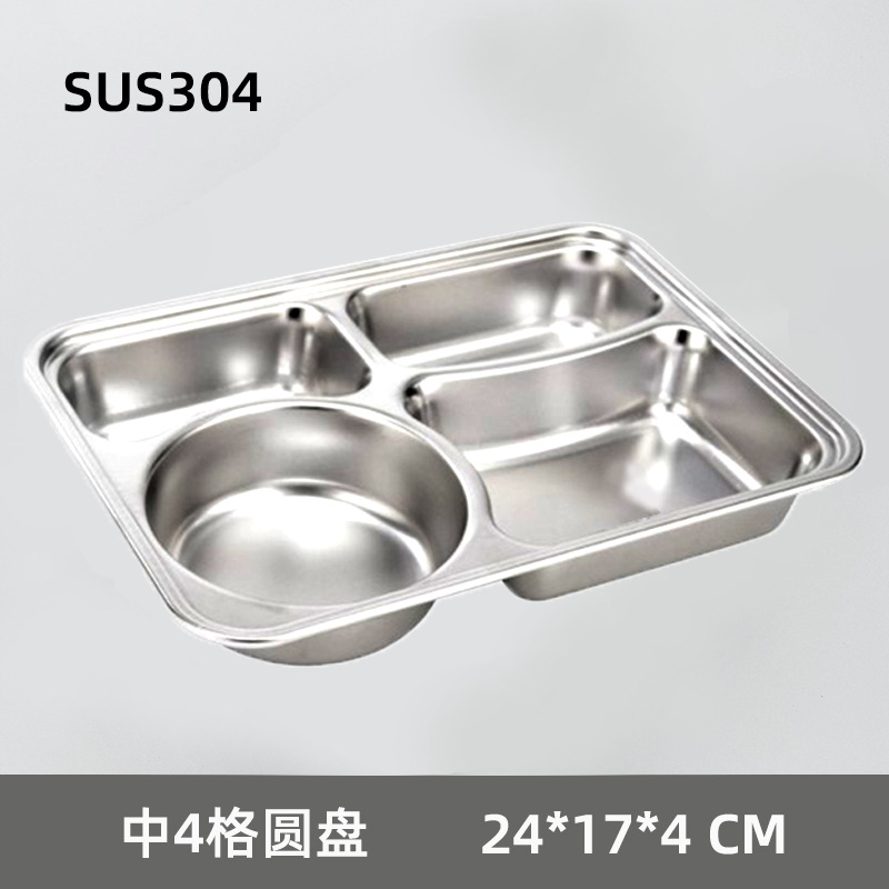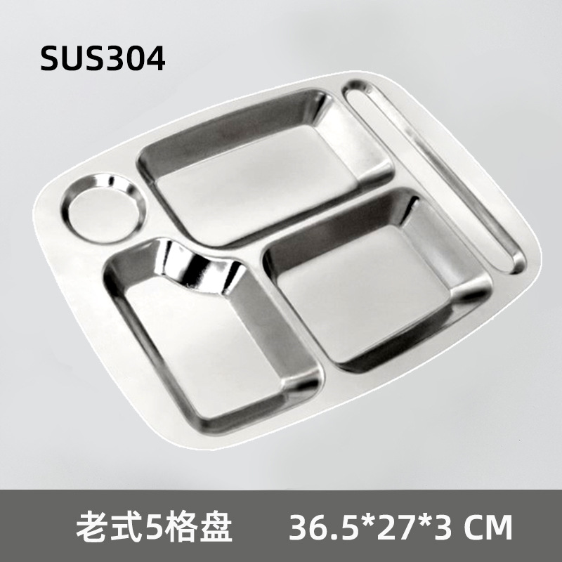 식품등급 304 스테인리스 디너접시, 성인식당 패스트푸드접시, 어린이 및 학생용 밥접시, 4칸 및 5칸 디너접시스토어 가기