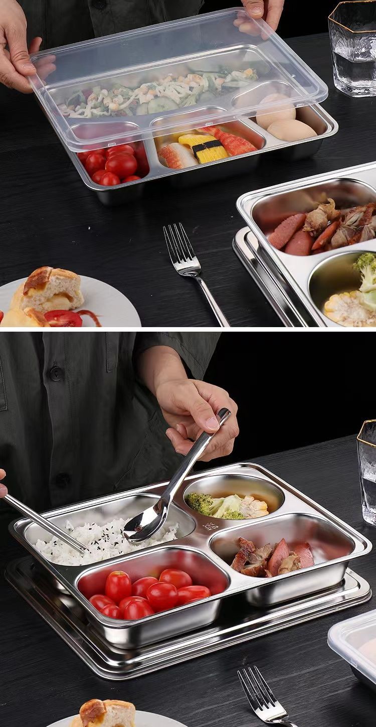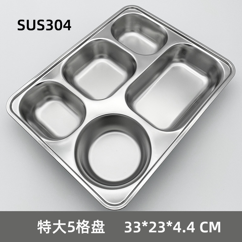 식품등급 304 스테인리스 디너접시, 성인식당 패스트푸드접시, 어린이 및 학생용 밥접시, 4칸 및 5칸 디너접시