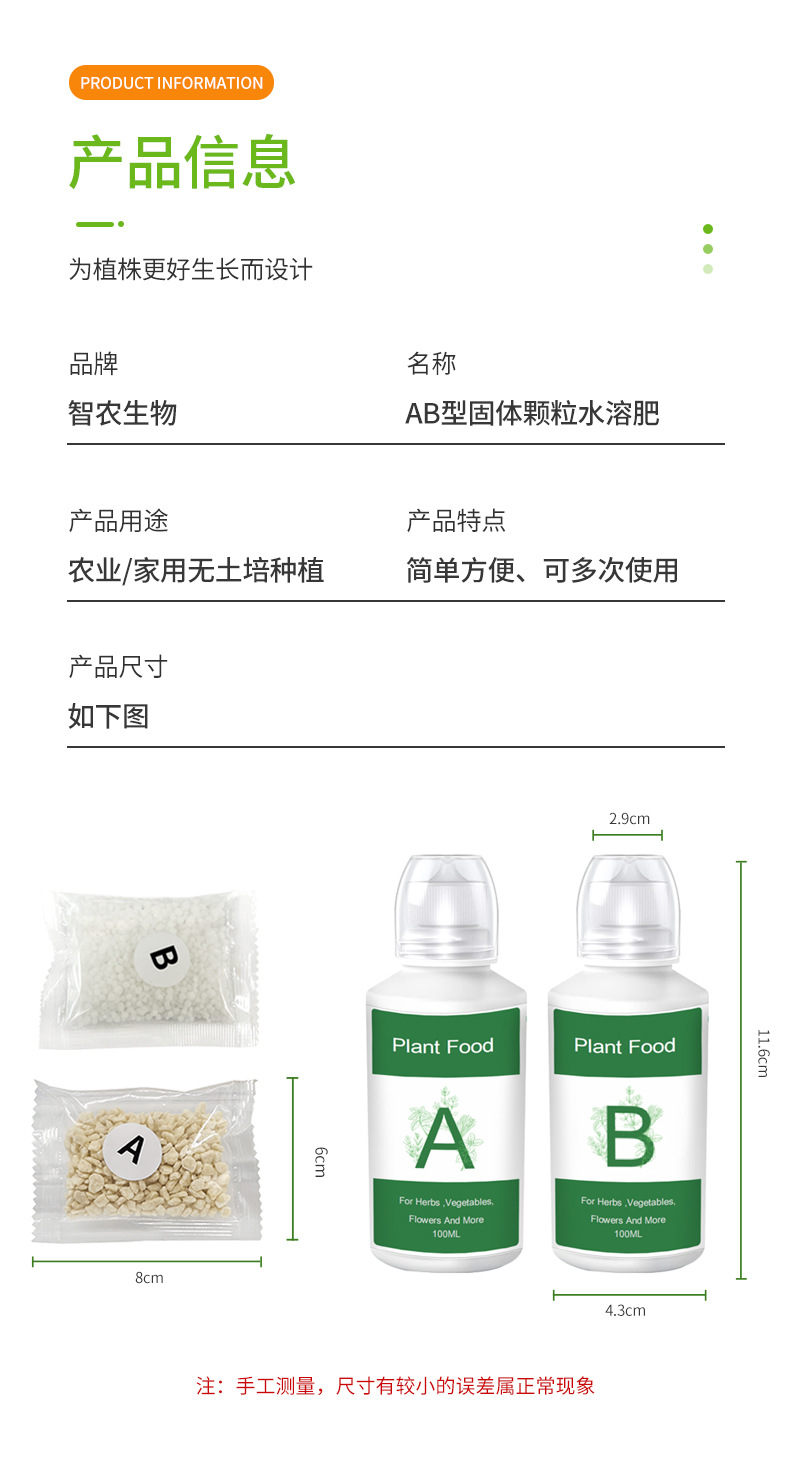 재고 무염 문화 수경 영양 용액 심기 기계 영양 과립 비료 AB 형 고체 과립 수용성 AB 비료
