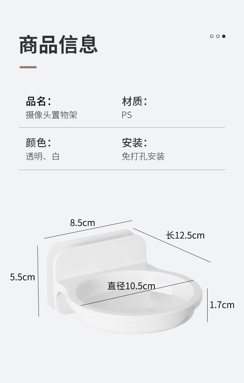 • 商品名称:日式无痕壁挂浴室置物架 监控摄像头支架