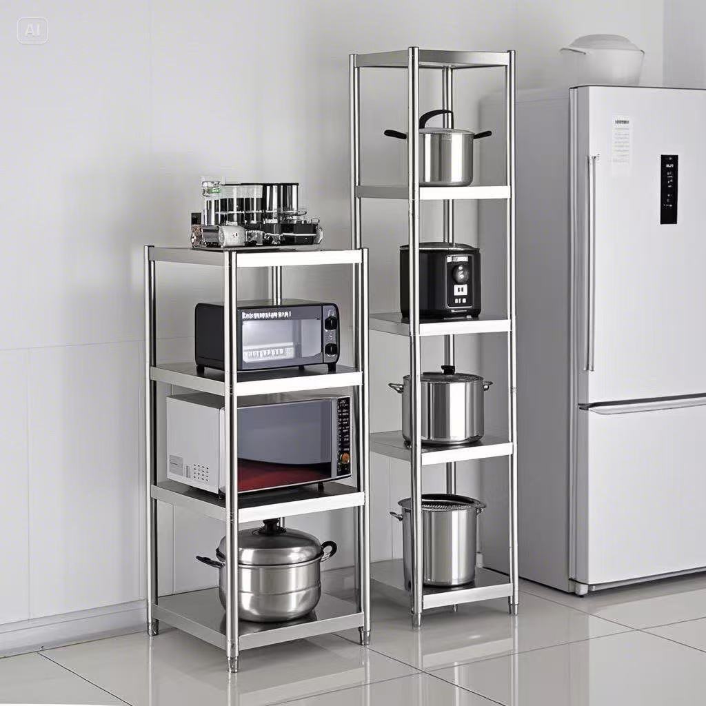 주방 보관 랙 바닥 캐비닛 스테인레스 스틸 선반 주방 콘솔 작업대 다기능 스토브 다층 랙