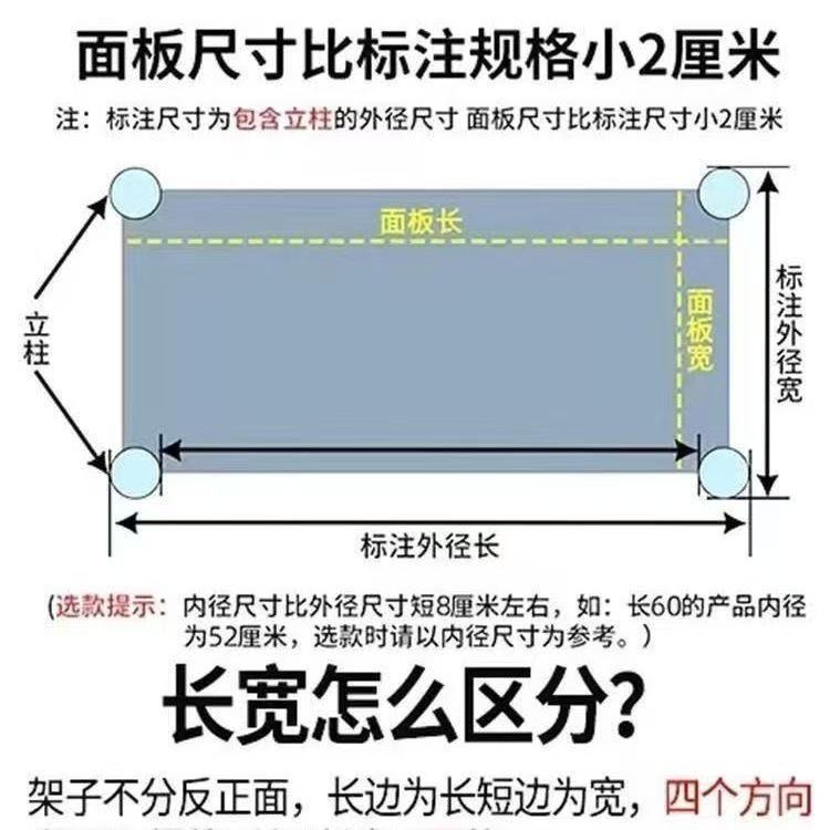 友情提示:本店发货默认快递    德邦快递,顺丰快递和京东快递,需要代发哪个快递可以留言或者备注,本产品板子折边是2.5cm,立柱直径3.2cm,每层承重50斤左右,层板厚度0.3mm左右,不能放太重东西,买之前慎重考虑