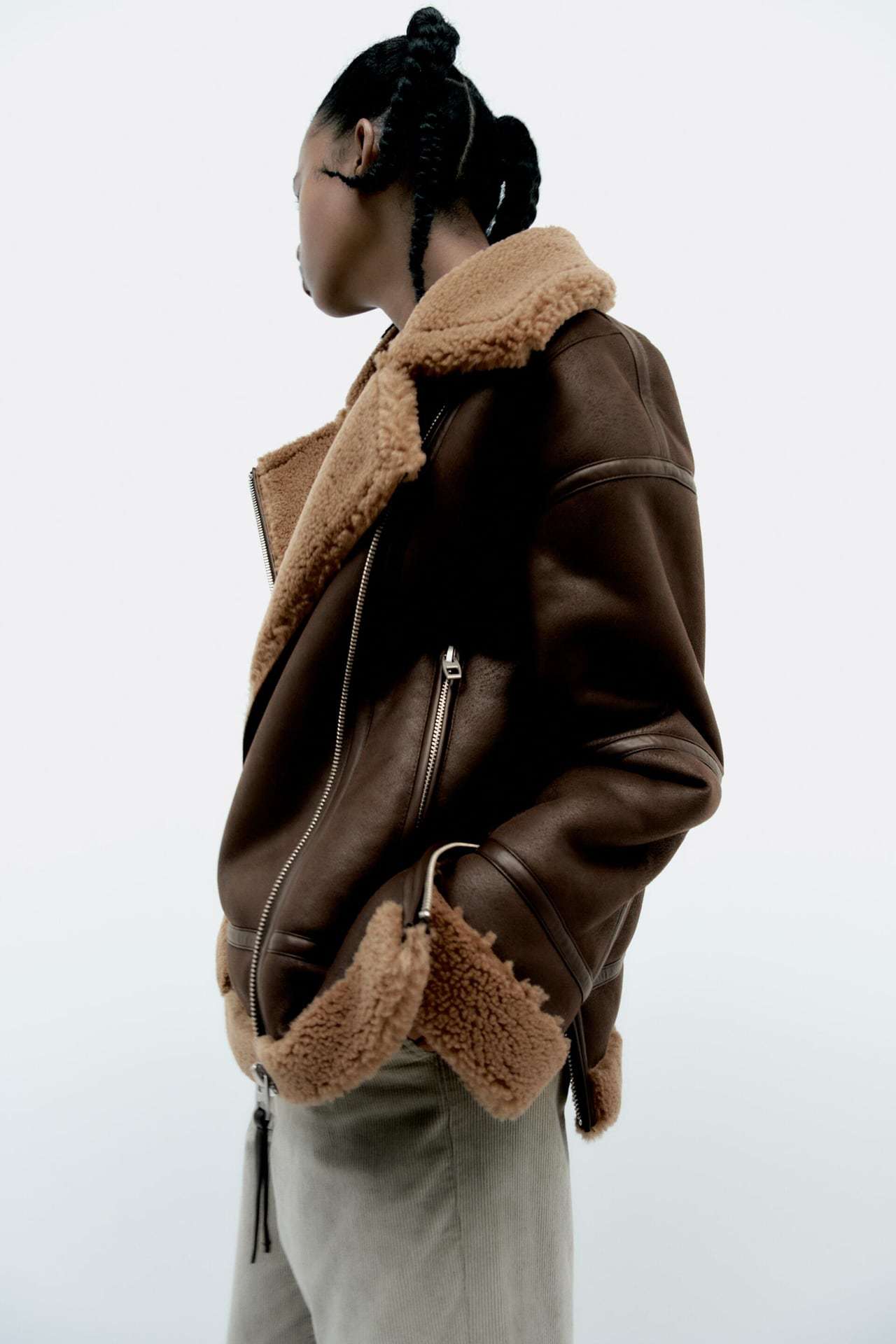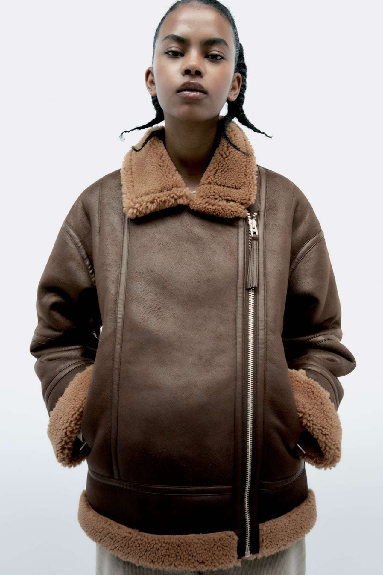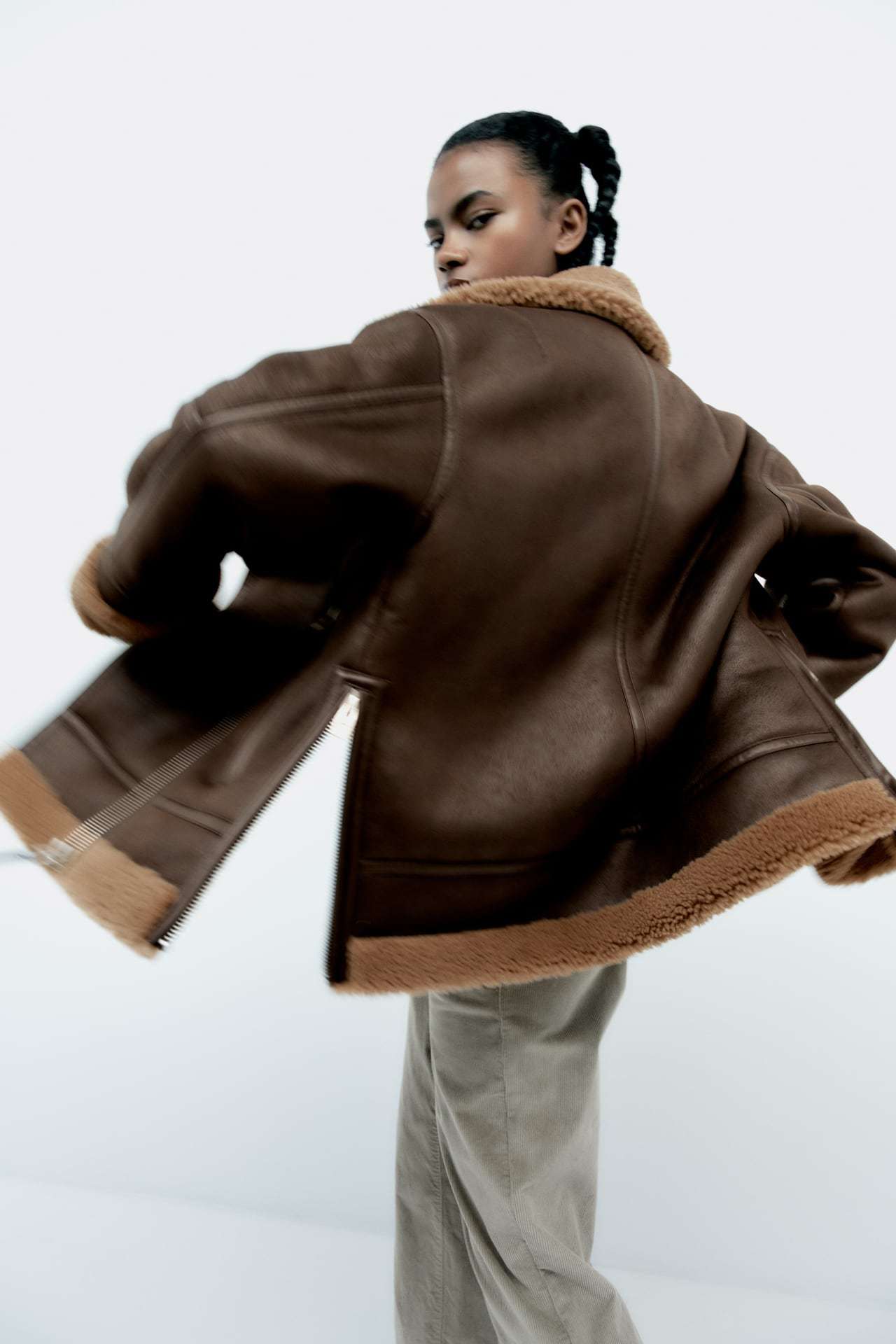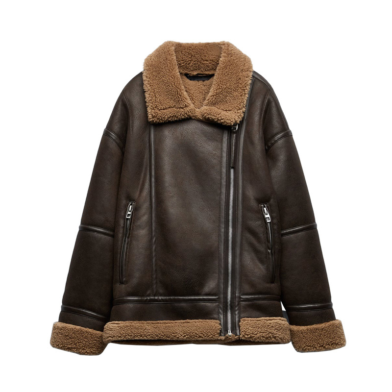 겨울 유럽 여성복 라펠 루즈핏 긴팔 양털 퍼 일체형 양면 재킷 4341808