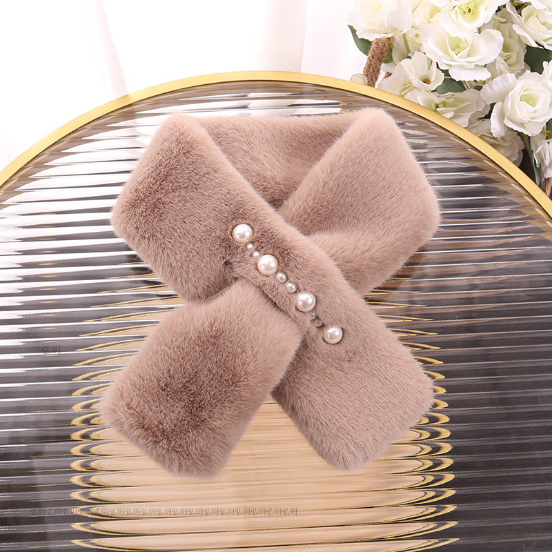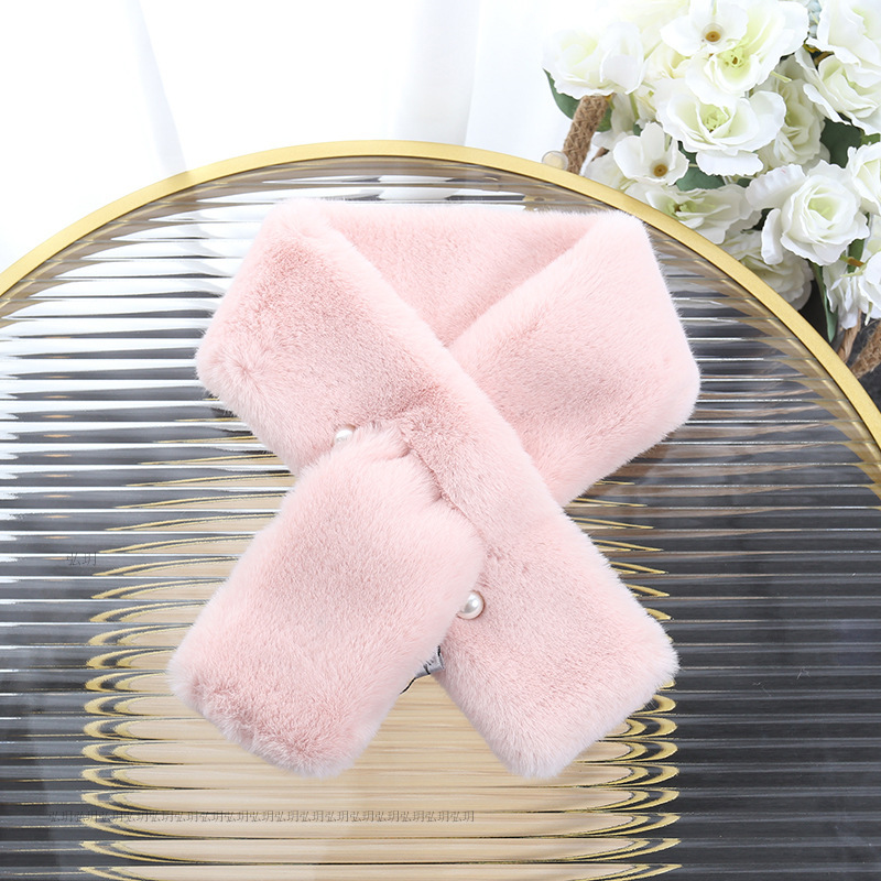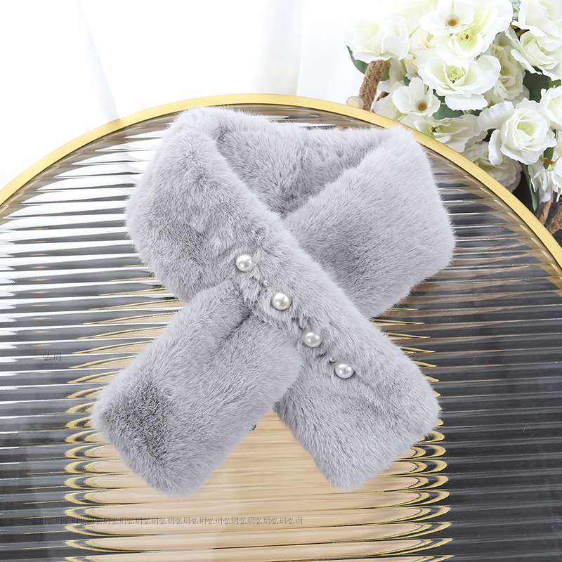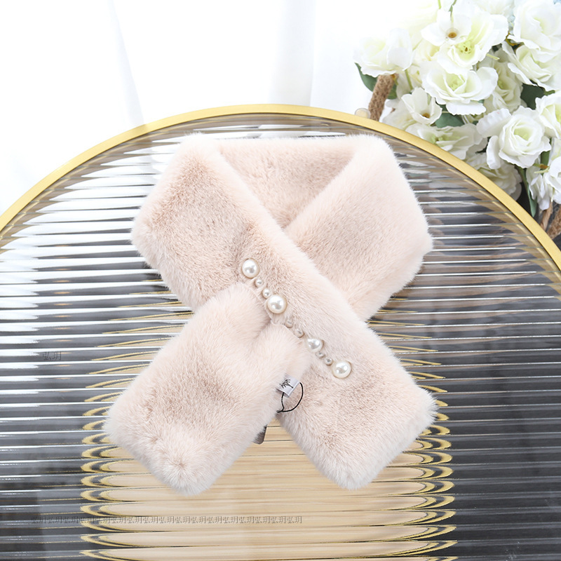 한국식 모조 토끼 모피 귀여운 봉제 렉스 토끼 모피 스카프 여성의 가을 겨울 따뜻한 풍경 꽃 진주 스카프스토어 가기