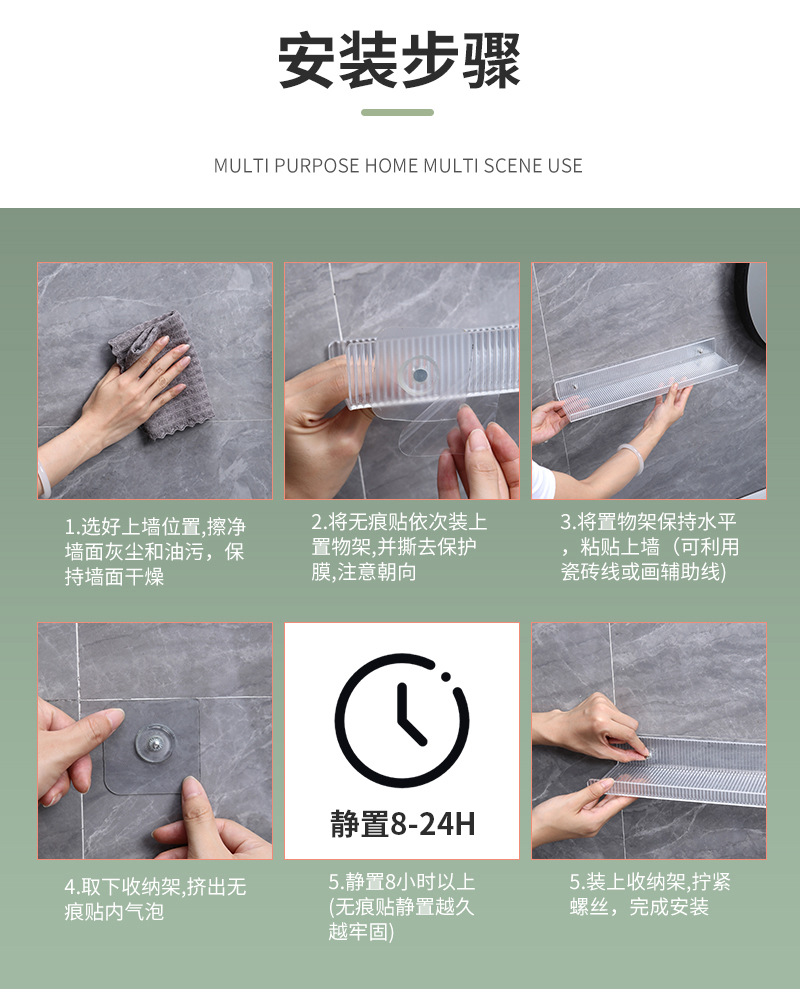 스트라이프 선반 랙 화장실 욕실 수납 랙 펀치 프리 워시 테이블 벽 수납 주방 수납 랙