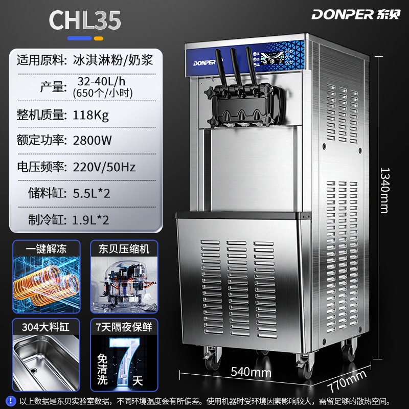 • CHL35+대형 저장탱크+원클릭 해동 기능+밤새 신선도 유지 기능+1.5HP 동베이 압축기+아이스크림 파우더 및 밀크 슬러리 사용 가능