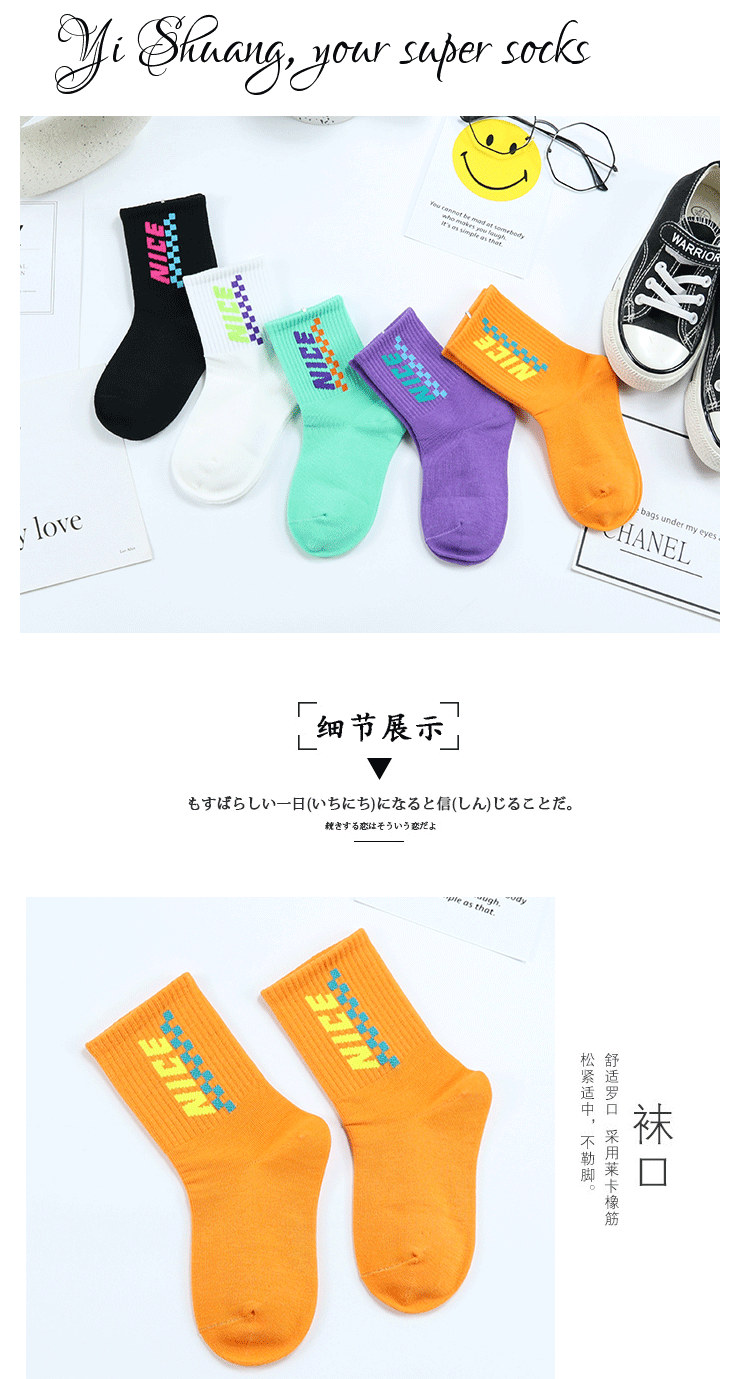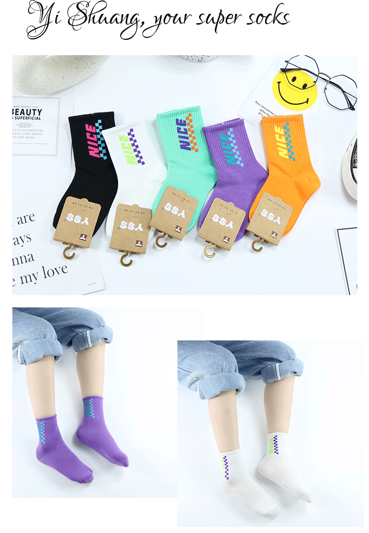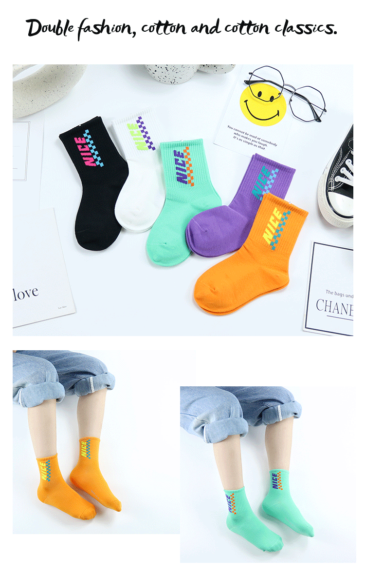 Yi Pair 어린이 양말 가을과 겨울 새로운 한국식 문자 중간 길이 양말 빗질면 유행 브랜드 어린이 양말 스포츠 양말스토어 가기